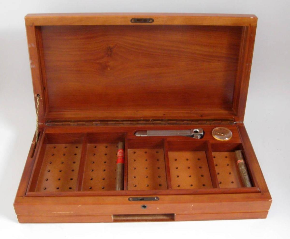 Cigar humidor of mahogany, 20th century. Denmark. With the initials AH on lid. Fitted with hygrometer and cigar cutter. L .: 49 cm. D .: 25 cm. H .: 10 cm.