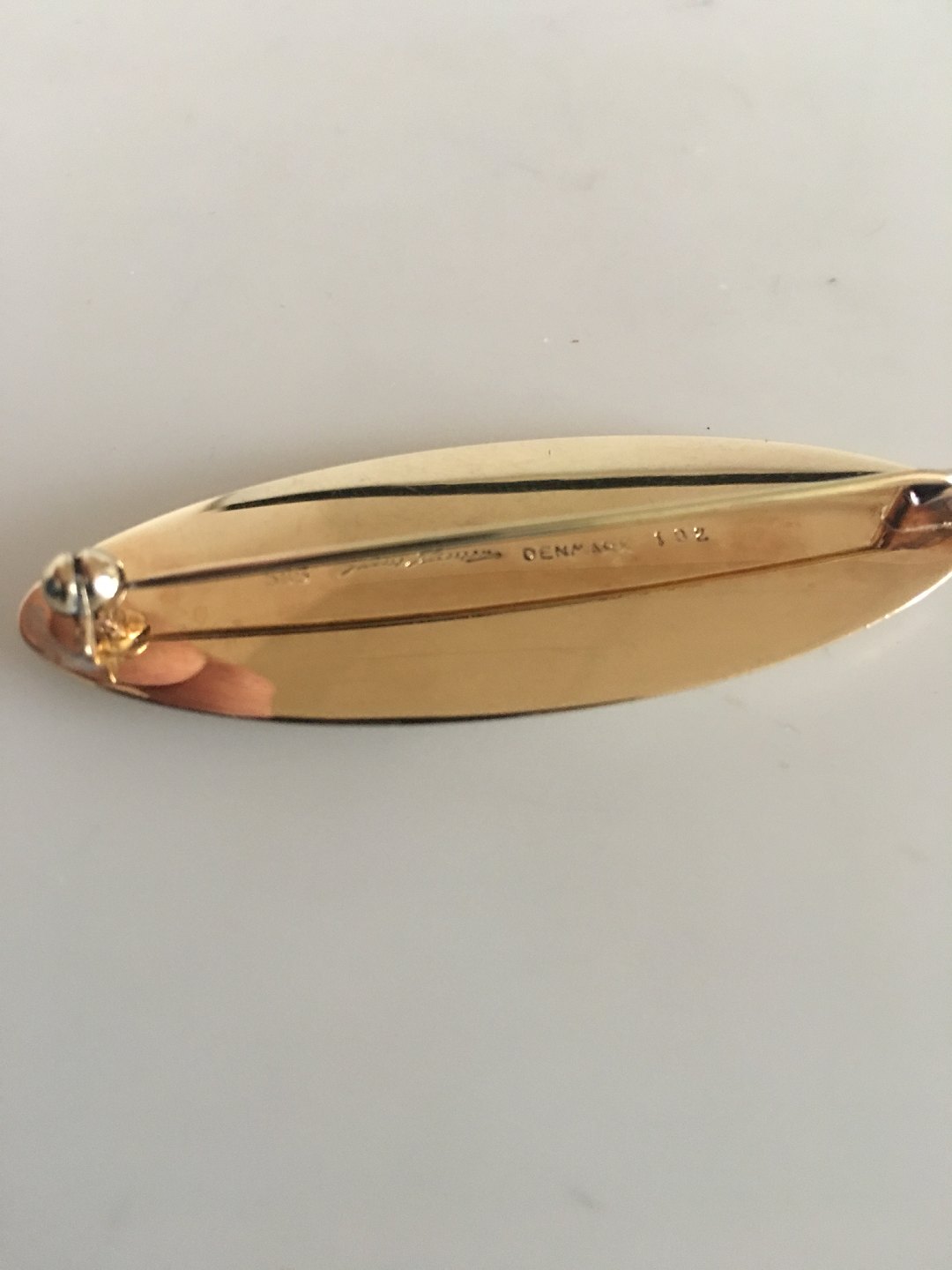 Hans Hansen 14K Gold Brooch No 102. Measures 5.6 cm / 2 13/64 in. Weighs 10 g / 0.40 oz.
