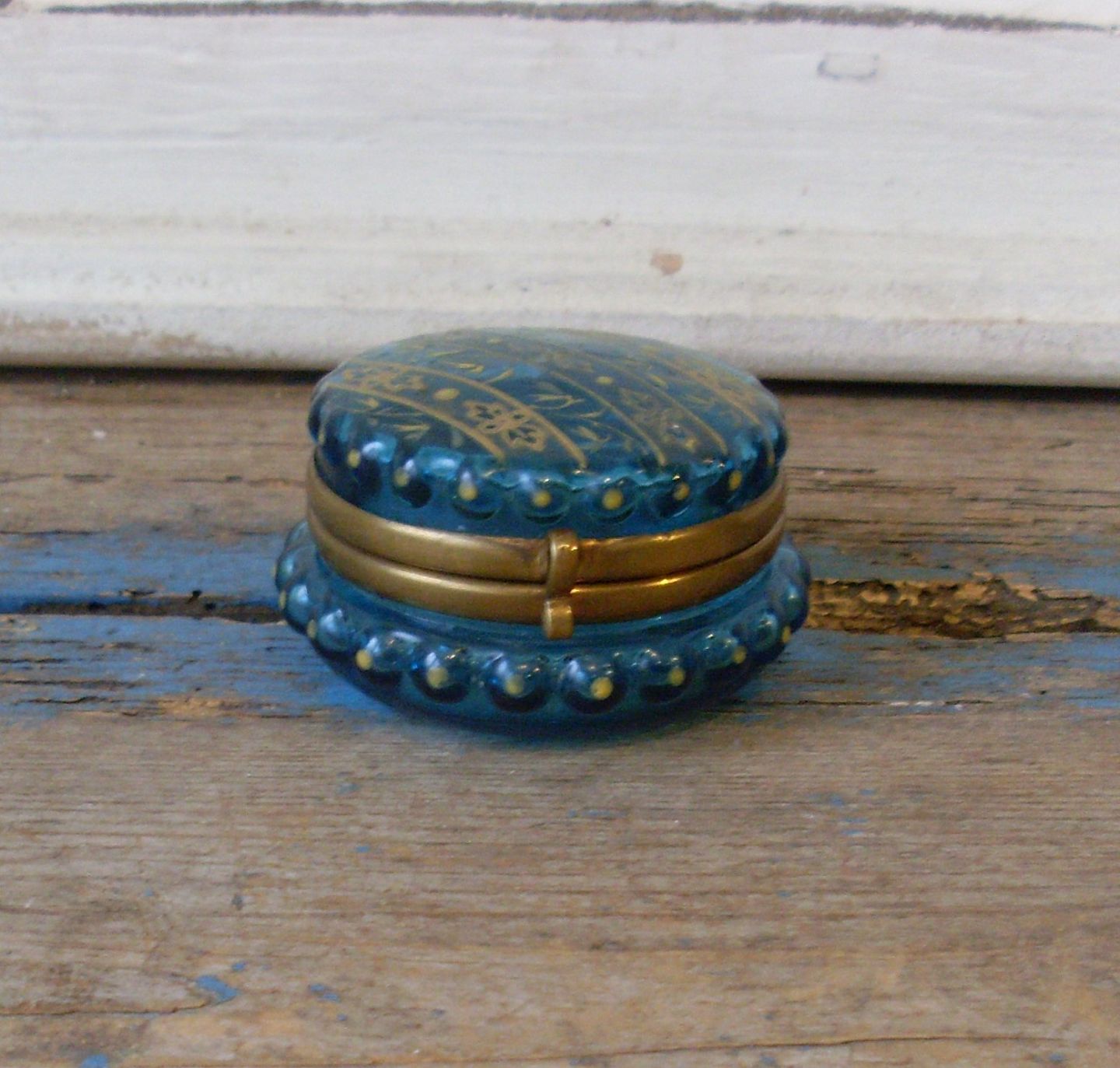 Fransk skrin i blåt glas med gulddekoration
