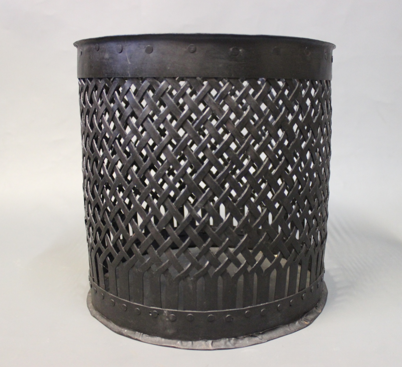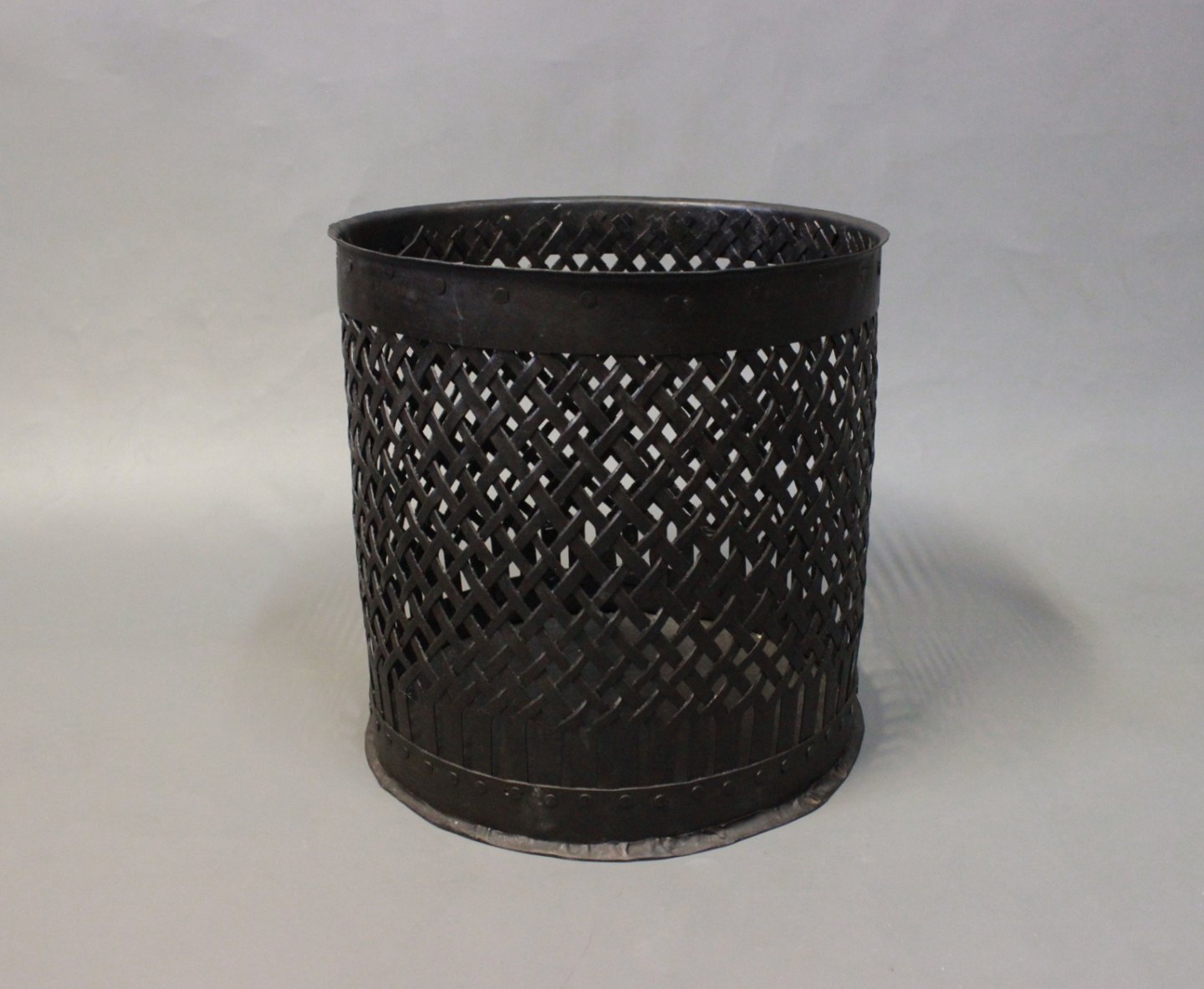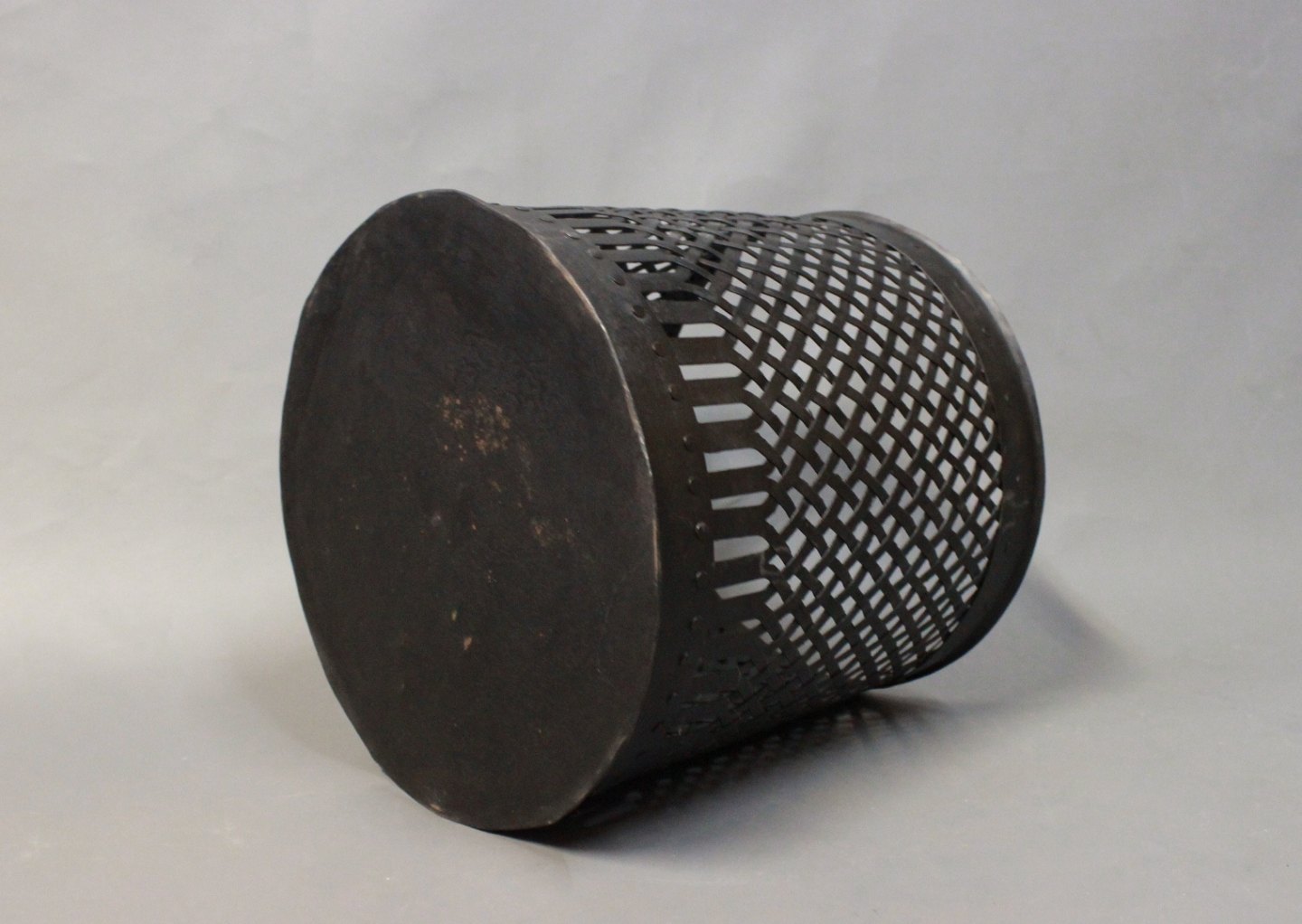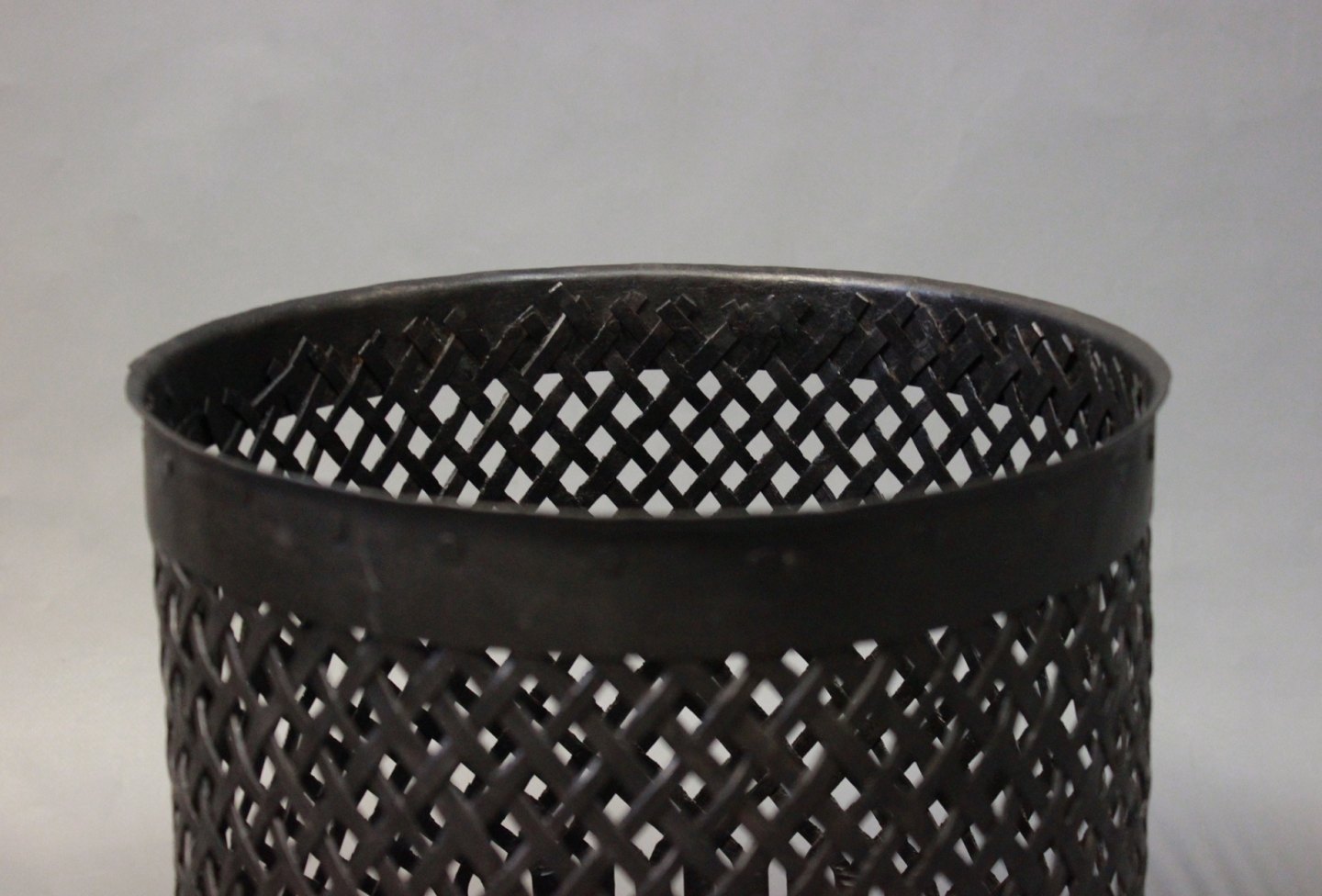 Skraldespand i sortmalet metal fra 1970erne.
