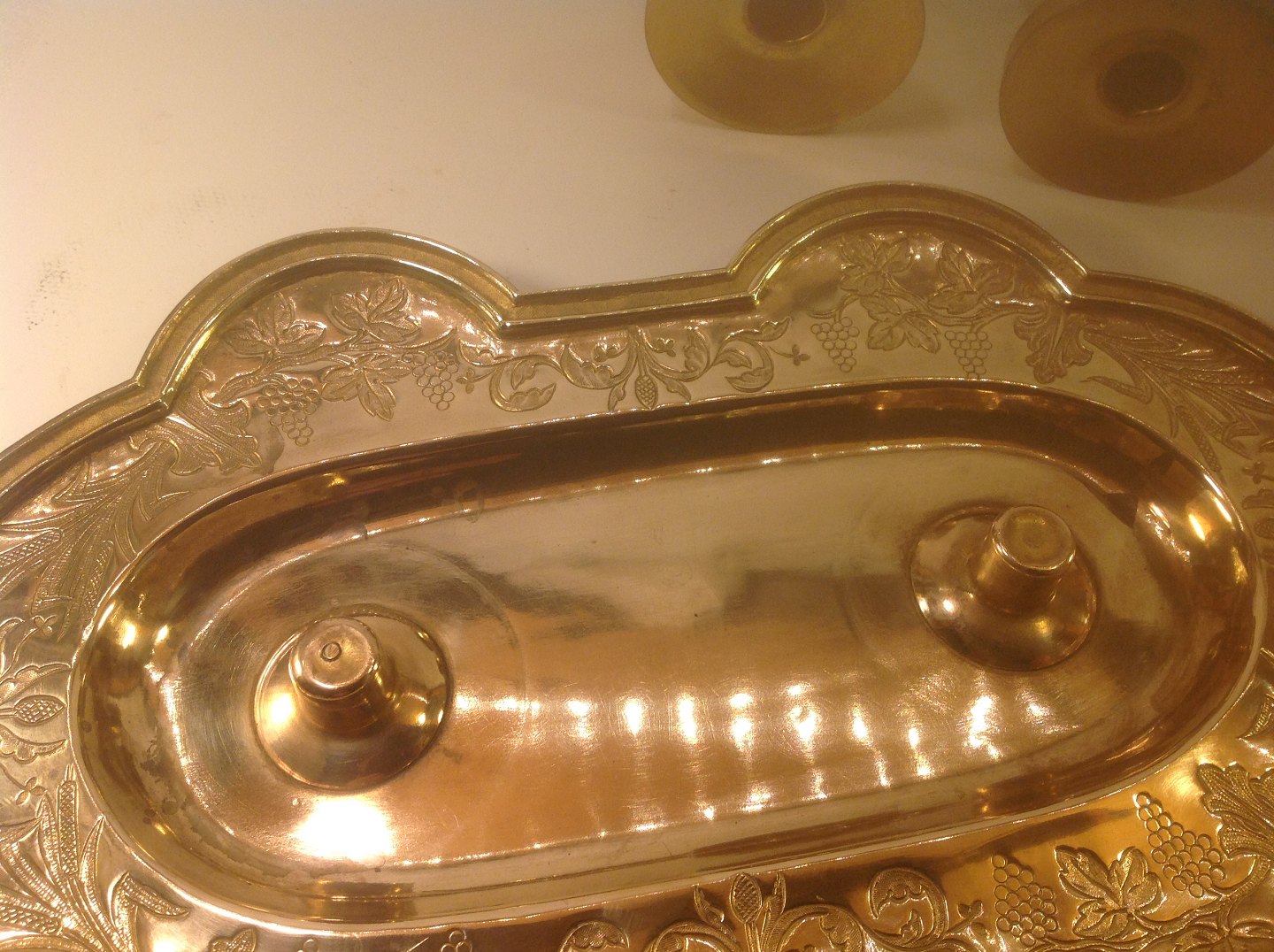 Bakke med vindrue ornamenter på.