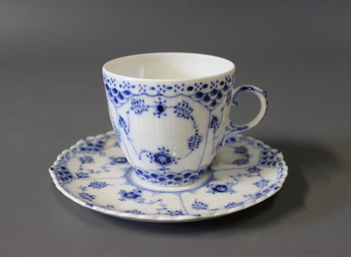 Kgl. musselmalet helblonde kaffekop samt underkop, nr.: 1/1035.