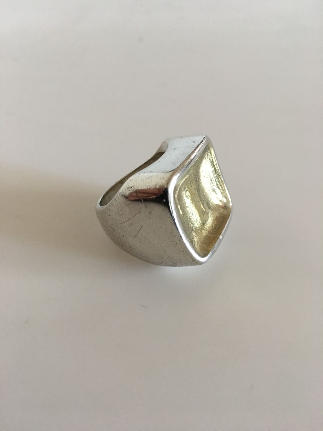 Hans Hansen Sterling Silver Ring with Gilded Top. Size 53 (US Size 6½). Weighs 25 grams (0.80 oz). Measures 2 x 2 cm (0 25/32" x 0 25/32")