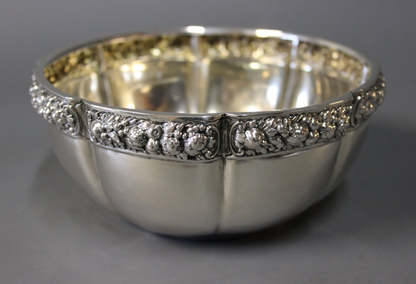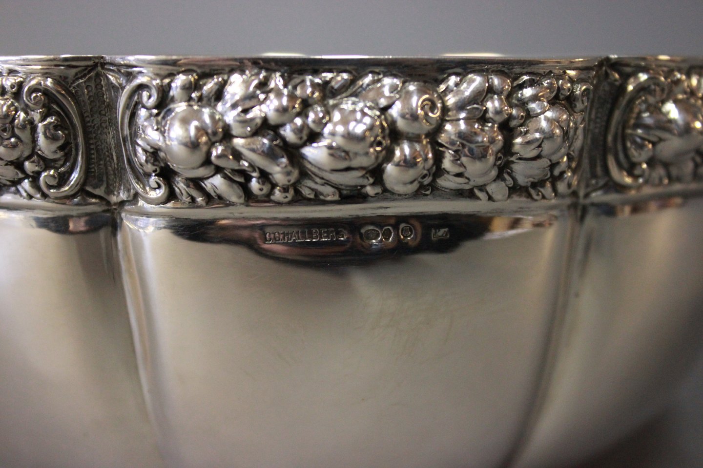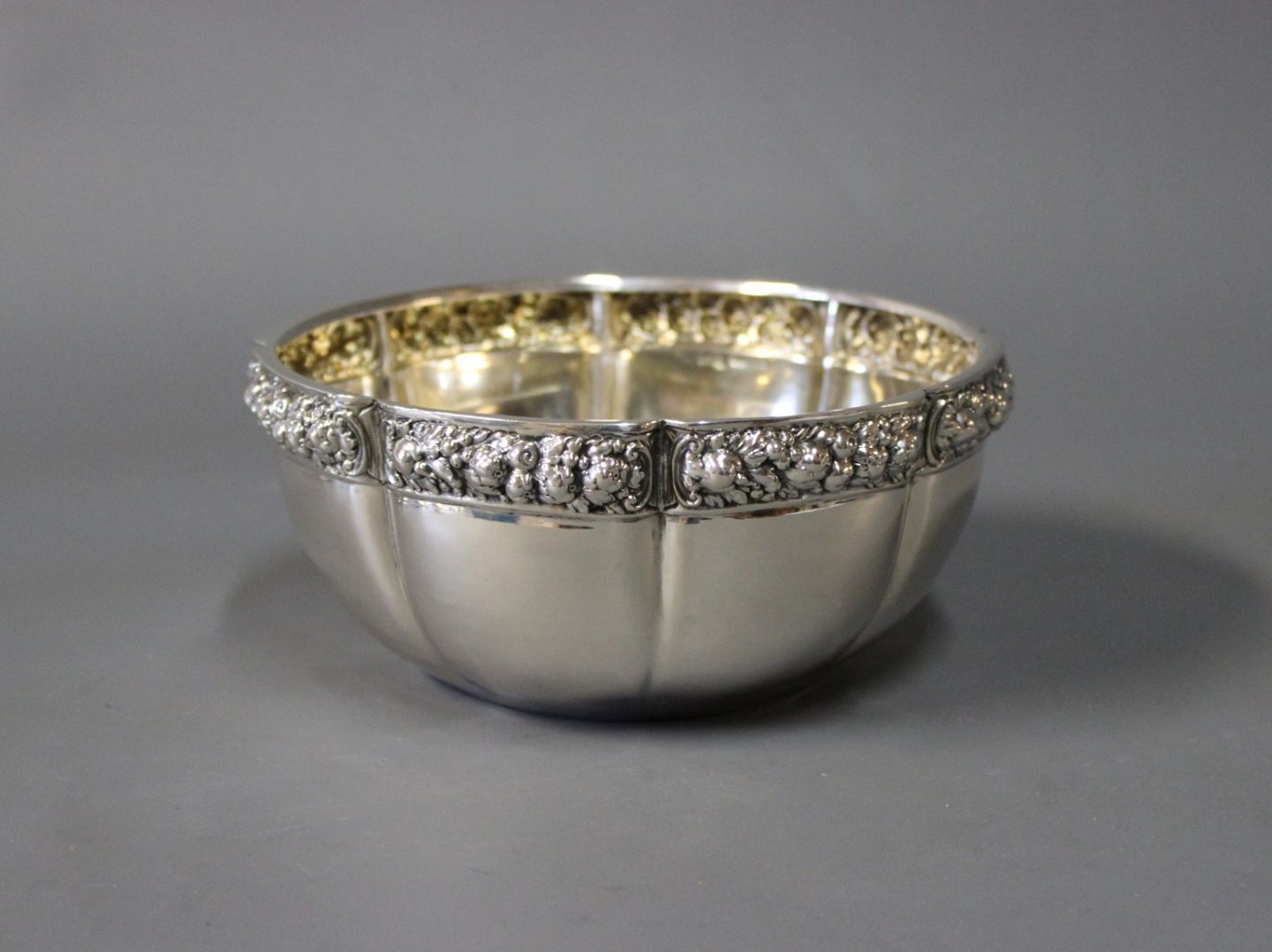 Sølvskål med blomstret kant stemplet C.G. Hallberg.