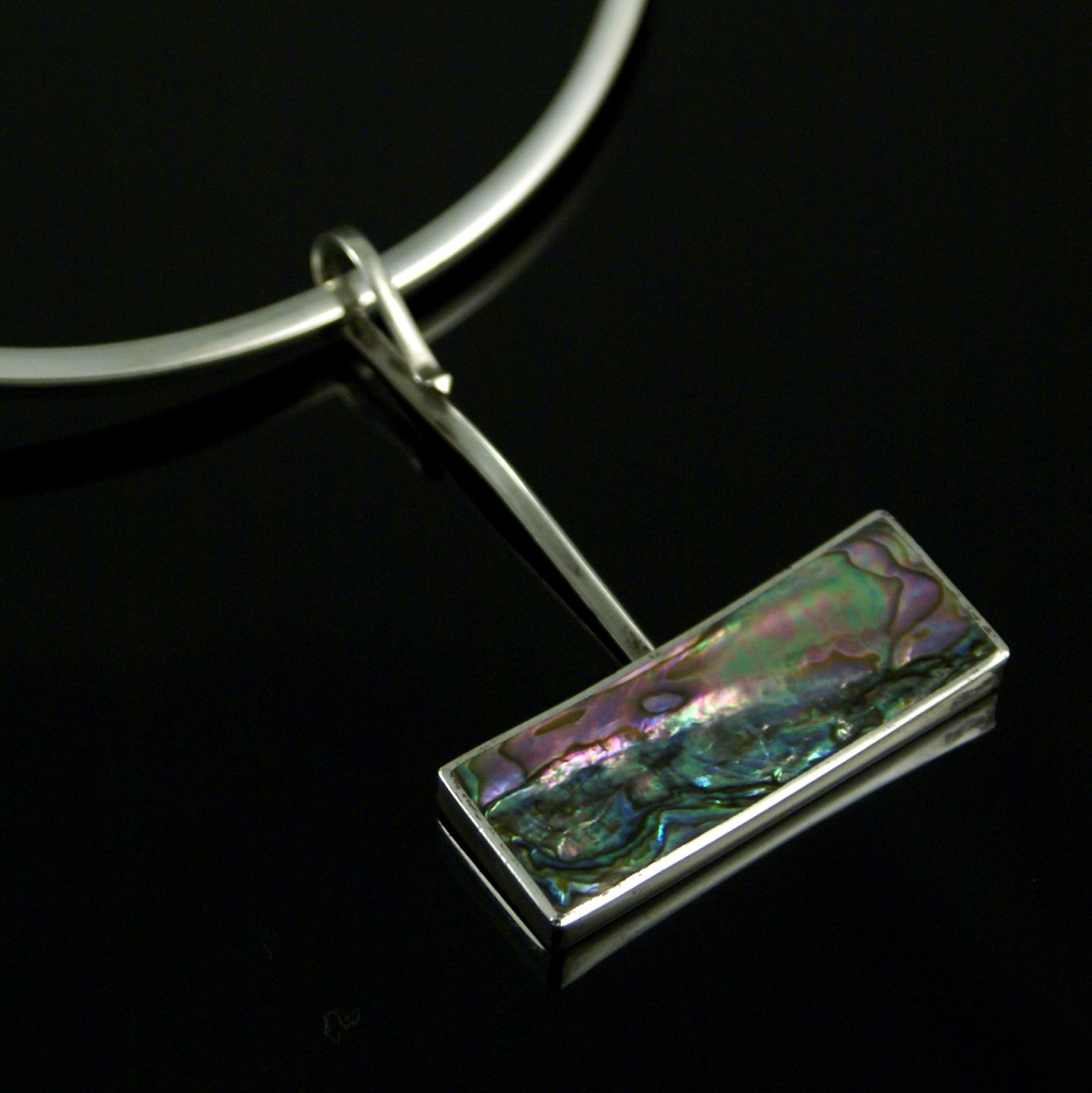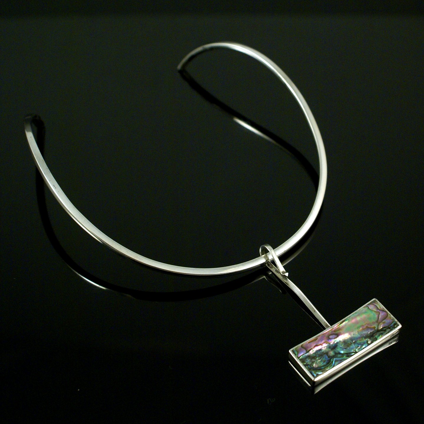 Palle Bisgaard - Denmark. Halsring i sterlingsølv med Abelone Vedhæng#5. 1960erne