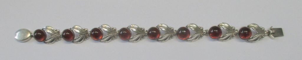 NE From sterling silver bracelet, 20th century. (After 1944) Nakskov, Denmark. Decorations with leaves with amber. Length: 20 cm. Stamped: NE From sterling 925 s.