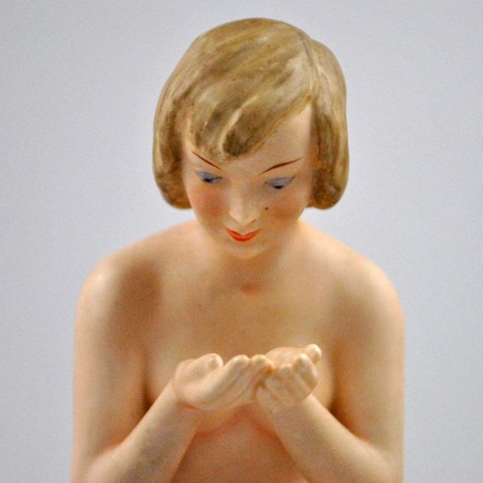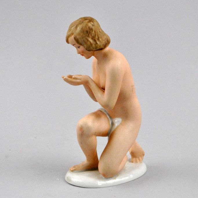 German porcelain model of nude young girl.