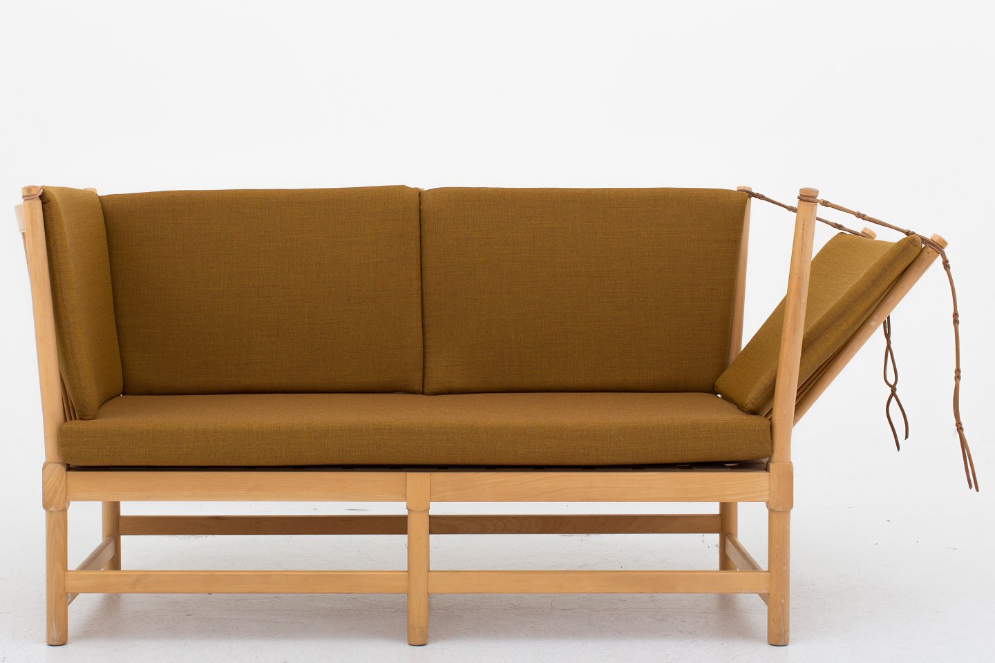 BM 1789 - Nybetrukket Tremmesofa i bøg med nye hynder i Canvas 424. KLASSIK tilbyder polstring af Tremmesofaen med stof eller læder efter eget valg. Kontakt os venligst for mere information.