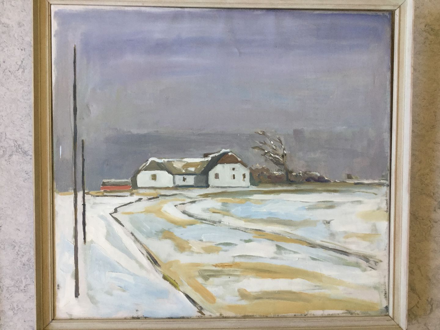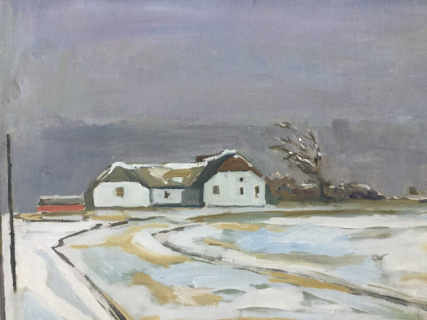 Maleri af Poul Møller - Vinterparti med gård - Klegod ved Ringkøbing.