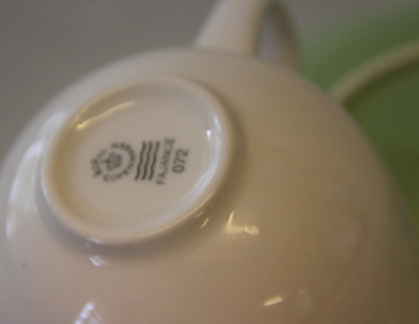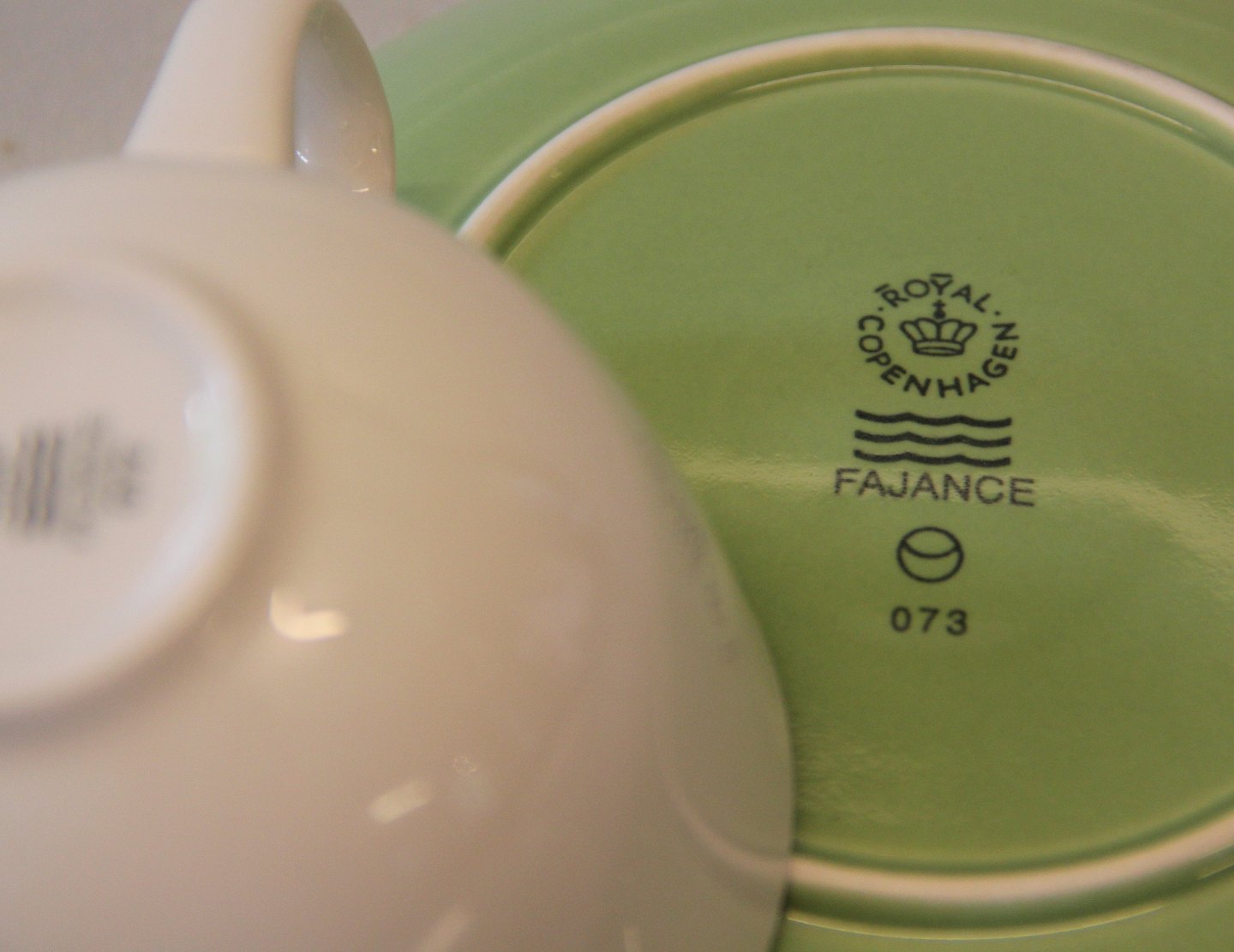 Grøn kant 072 Kaffekop 6,5 x 7,5 cm hel grøn underkop 14.8 cm (073) Årstiderne 4 ALL Seasons Royal Copenhagen