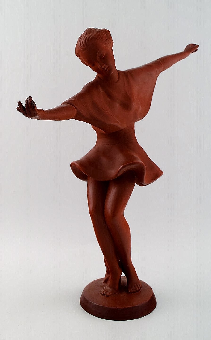 Keramos, Wien, dansende kvinde, figur i rødler. Art deco.
