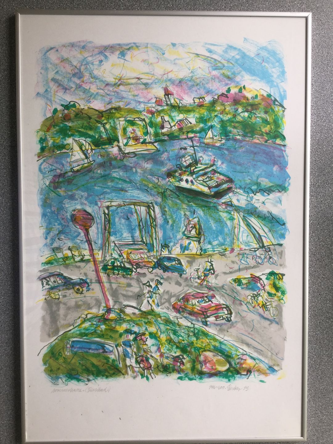 Litografi af Jørn Særker Sørensen 1993 - Sommerhavne - Fursund.