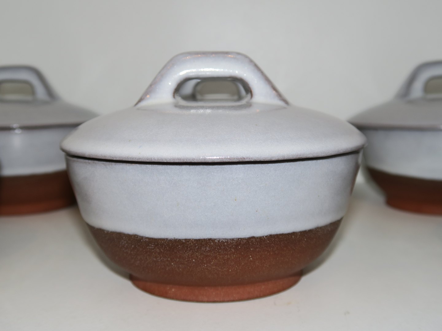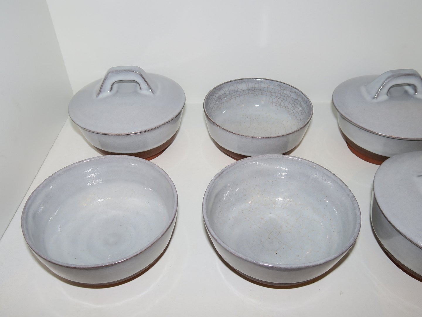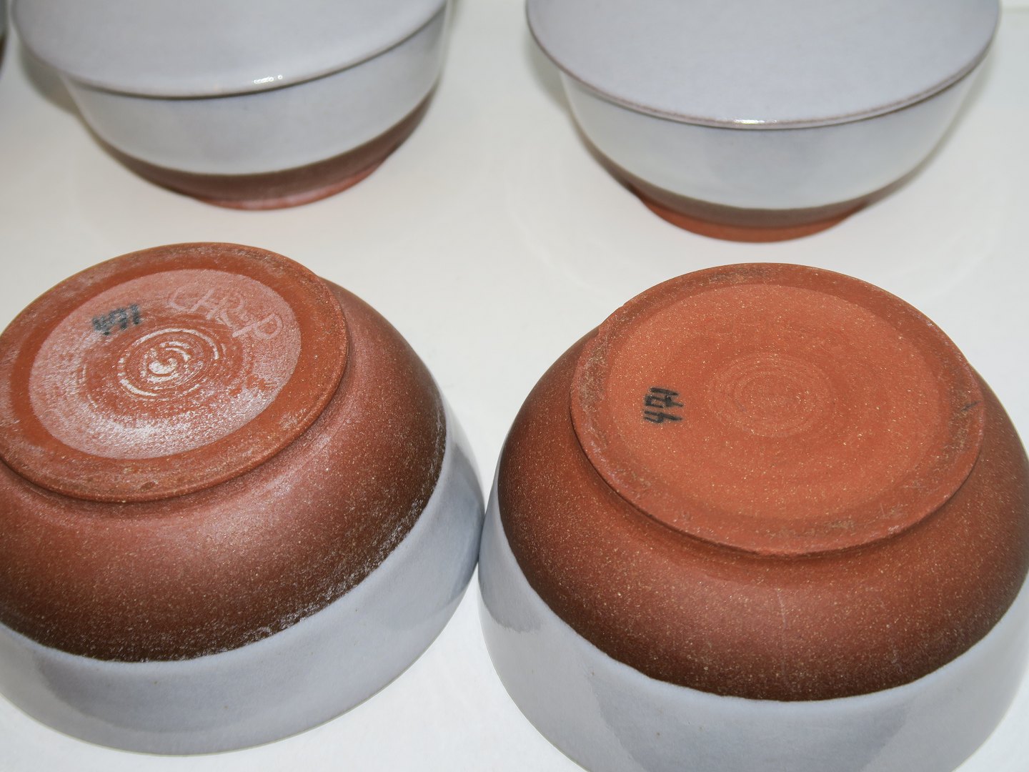 En skål har et lille skår på underkanten (kr. 1000,-)- se billede - ellers perfekt stand uden fejl.