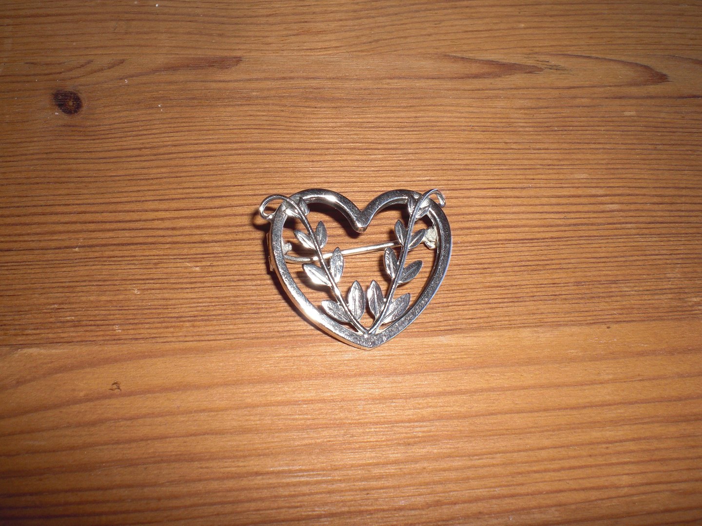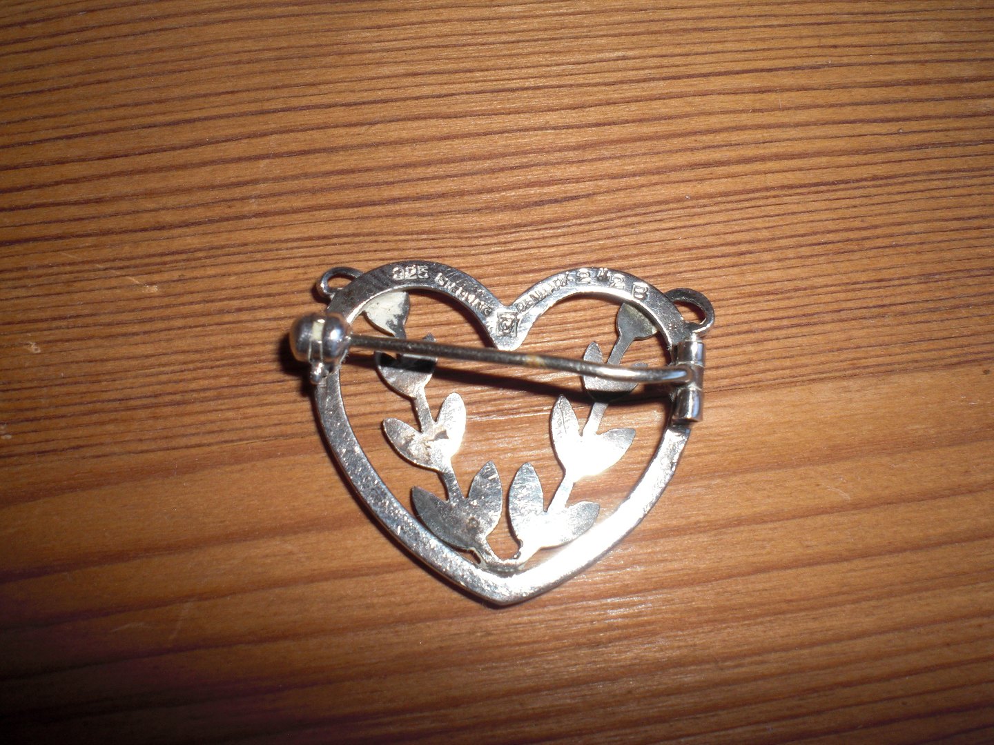 Text available in Danish: Georg Jensen hjertebroche i sterling sølv.