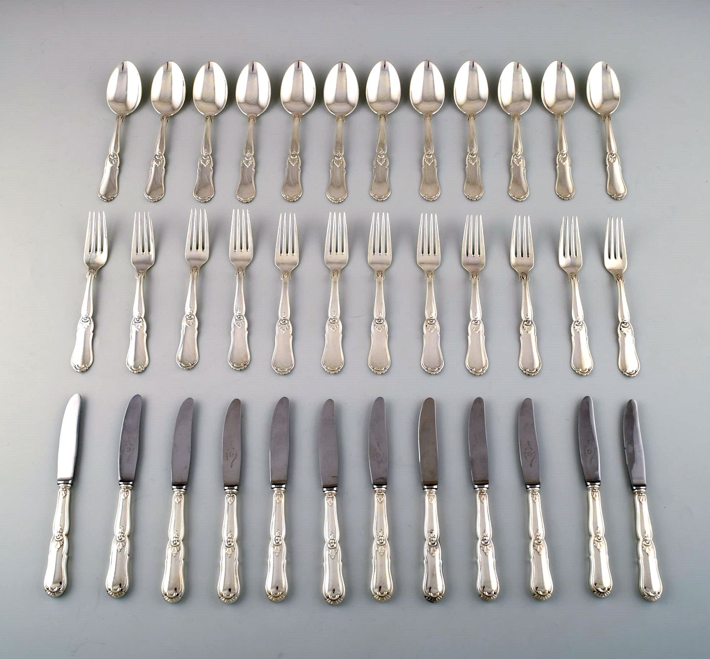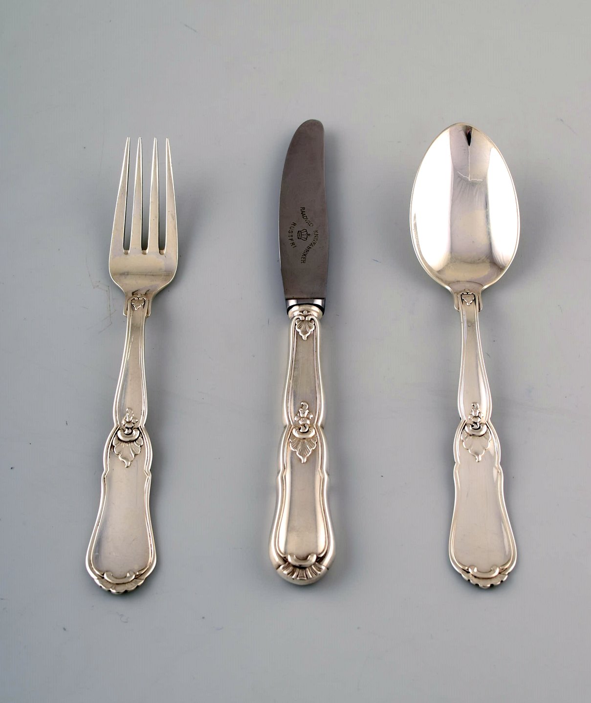 Komplet dansk tretårnet sølv middagsservice til tolv personer.