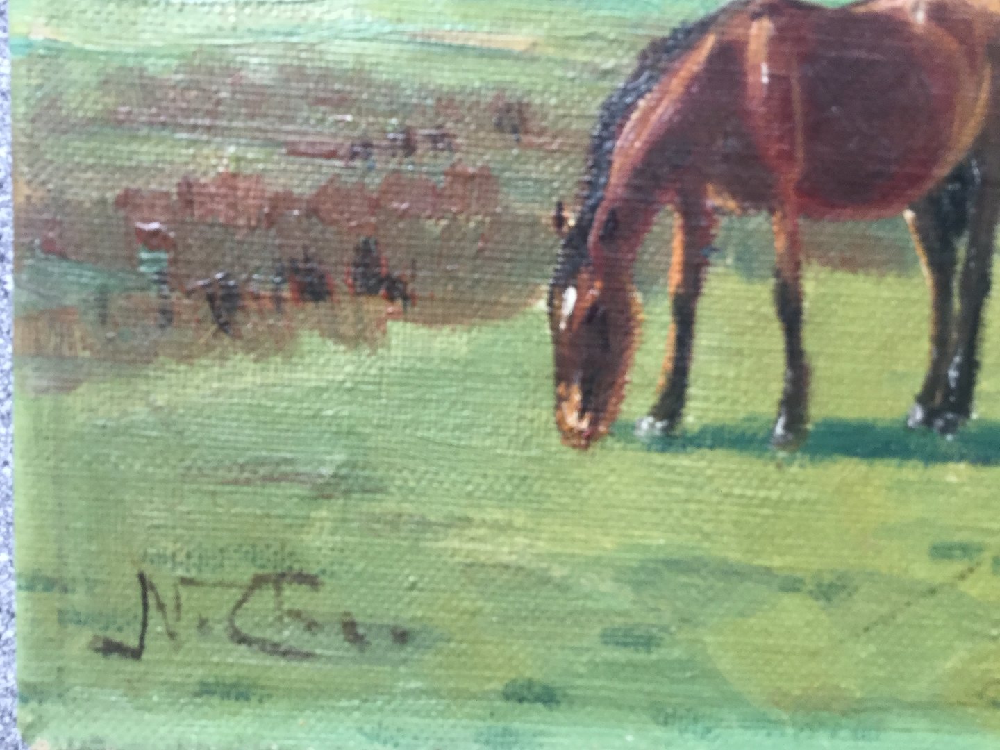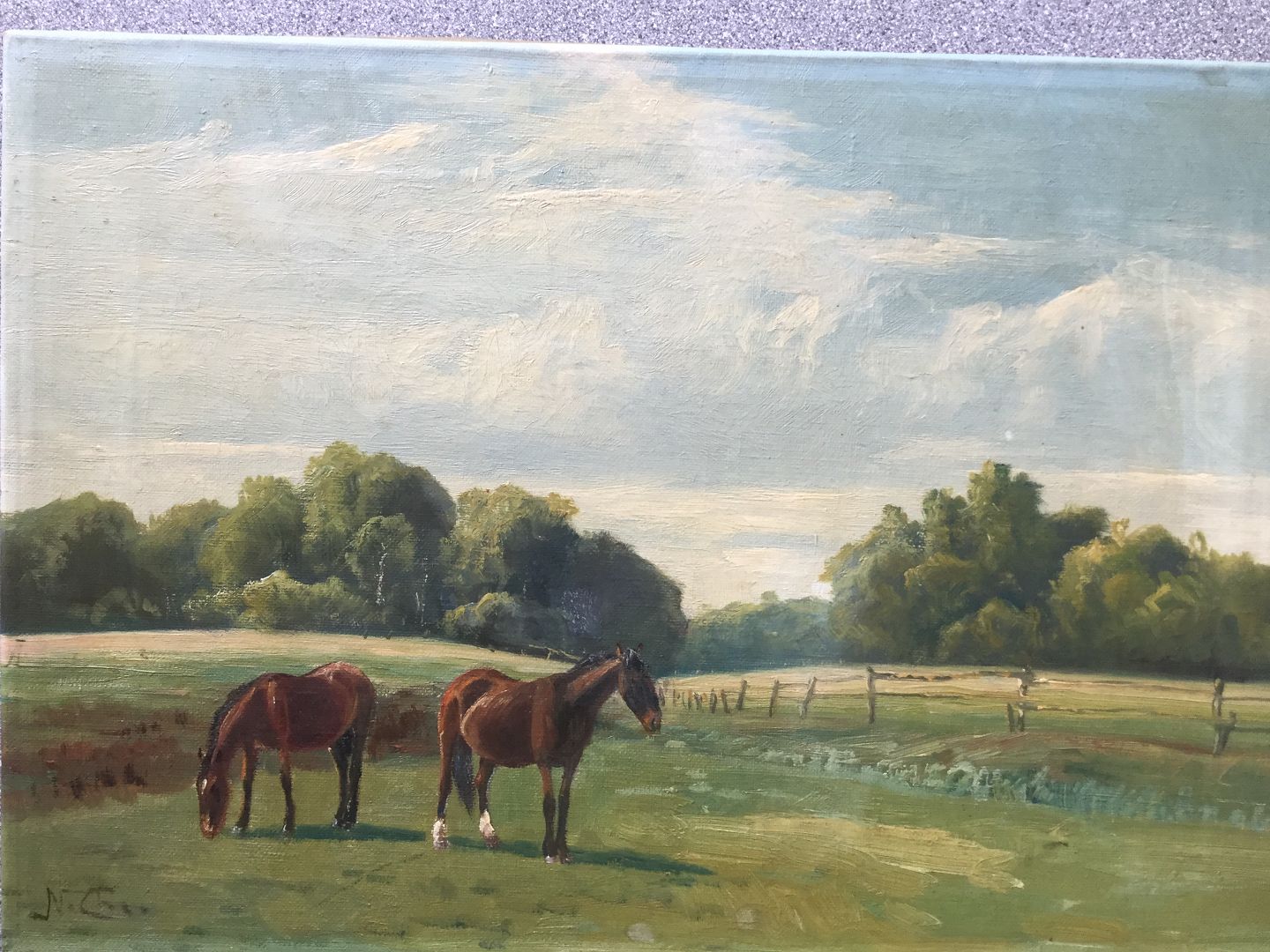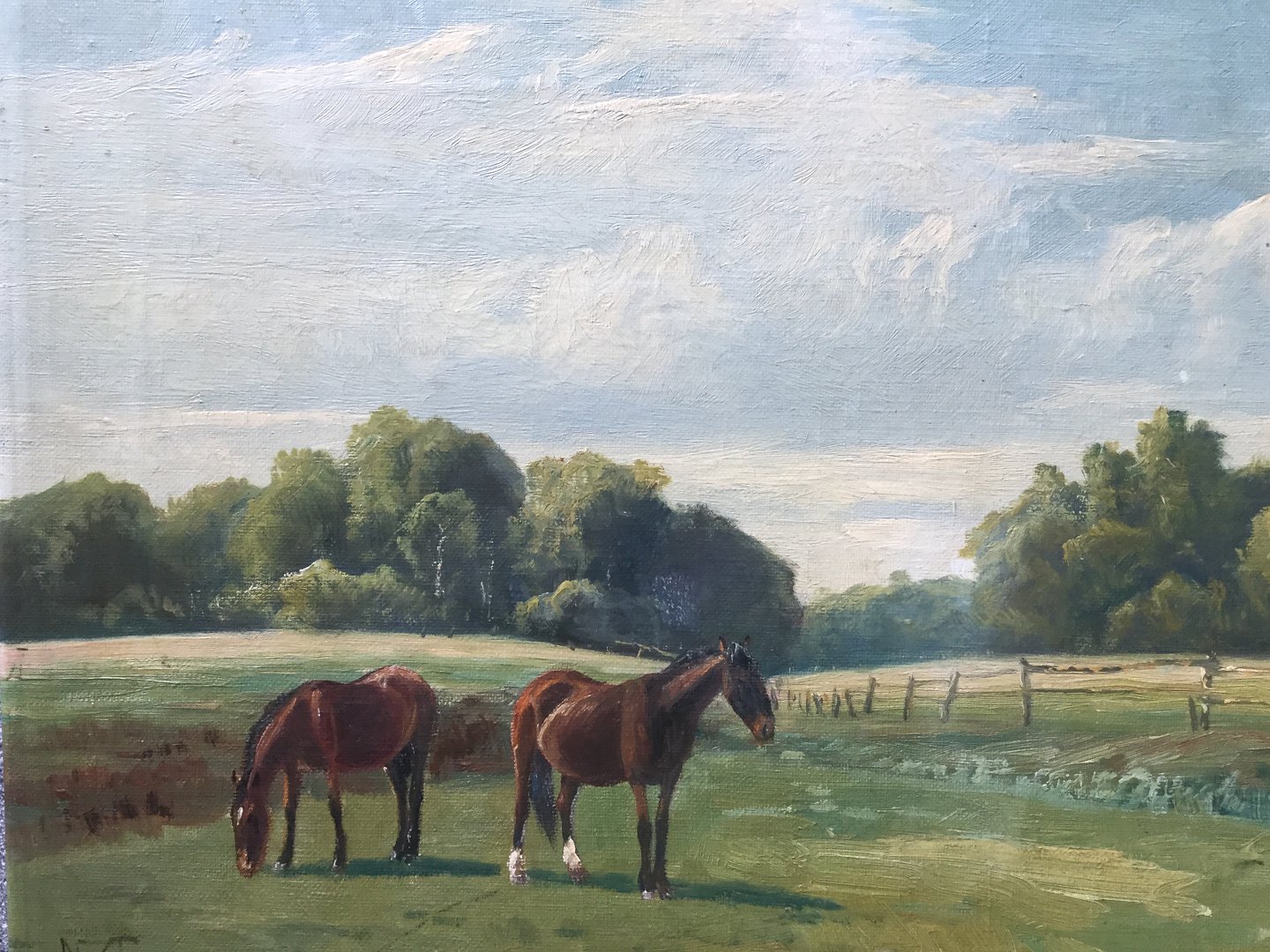 Maleri af Niels Christiansen - 2 heste på engen.
