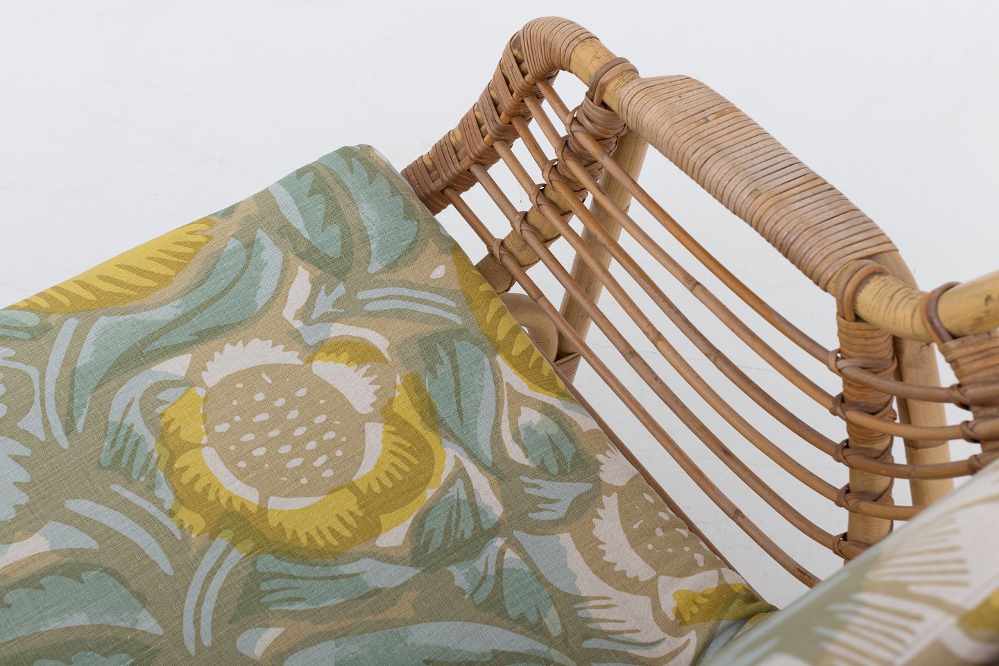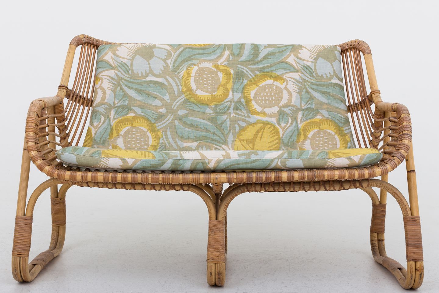 Kurvesofa med nye hynder i "La Foret, Lemon". Se matchende lænestole med varenummer 1035382