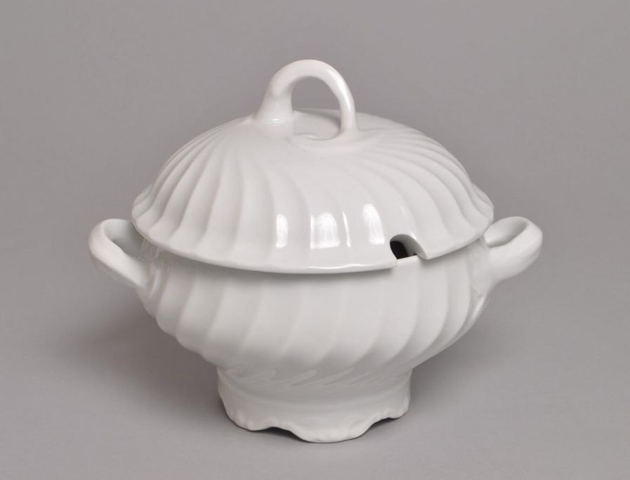 Porsgrund porcelæns sovse terrin med låg, Bogstad Hvit, 20. årh. Norge.
