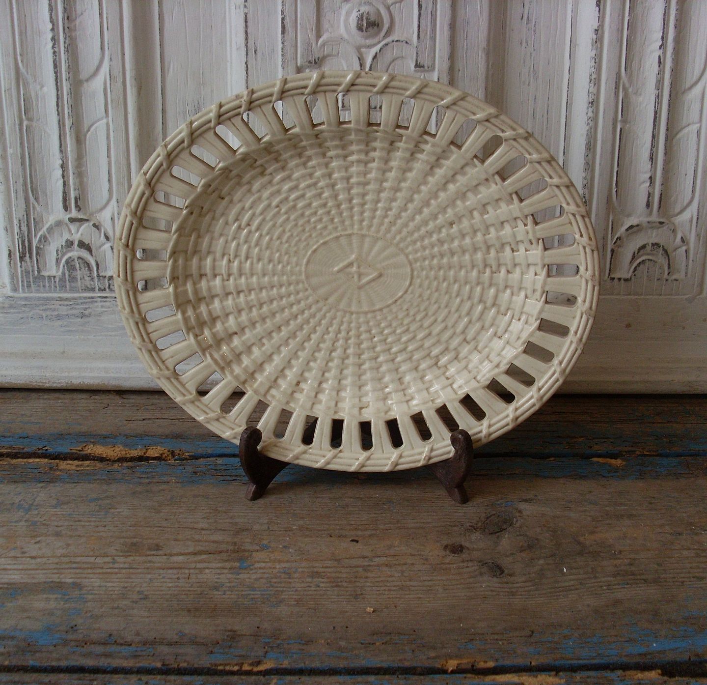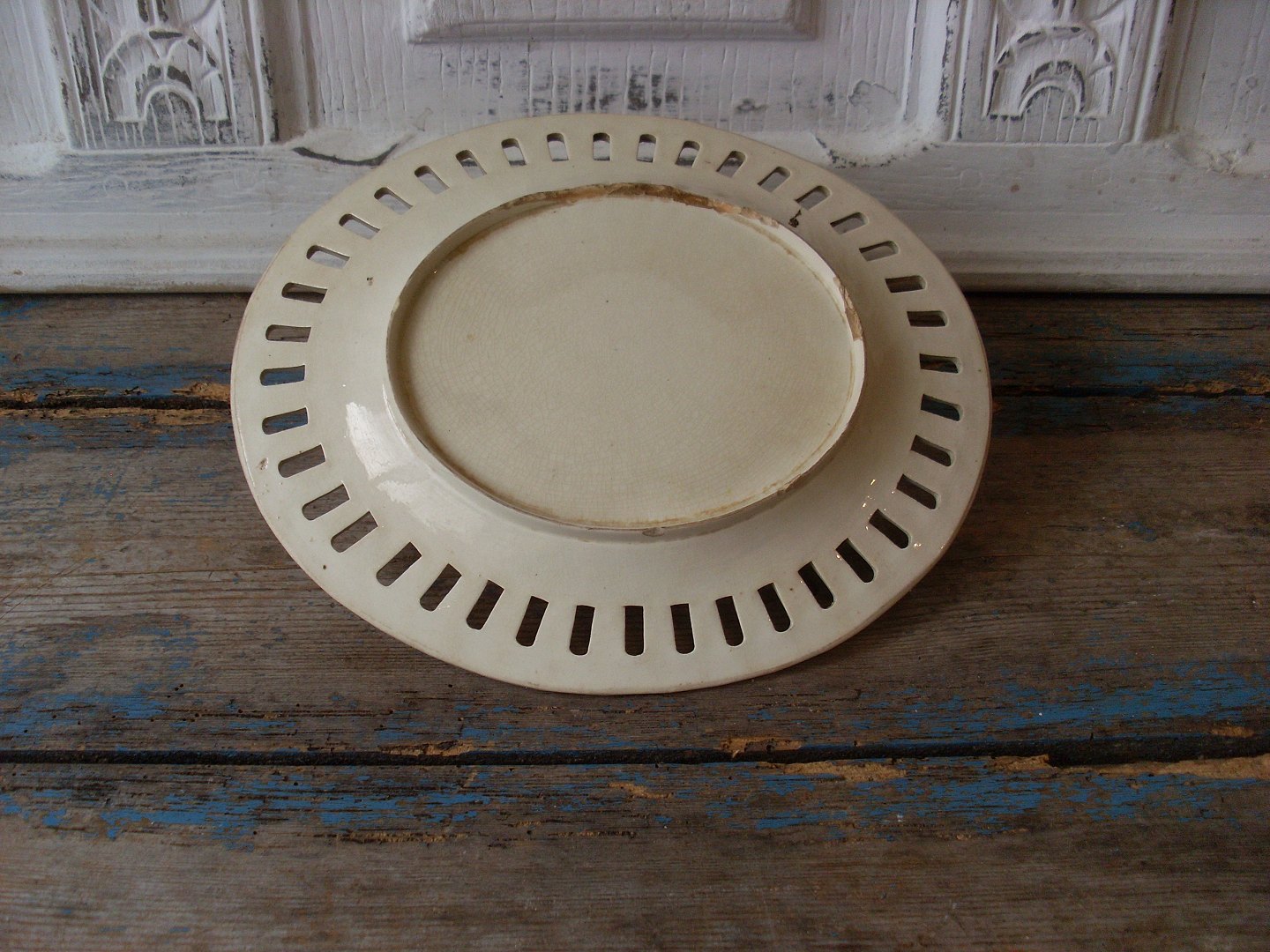 1800tals Engelsk creamware ovalt fad med gennembrudt kant 25cm.