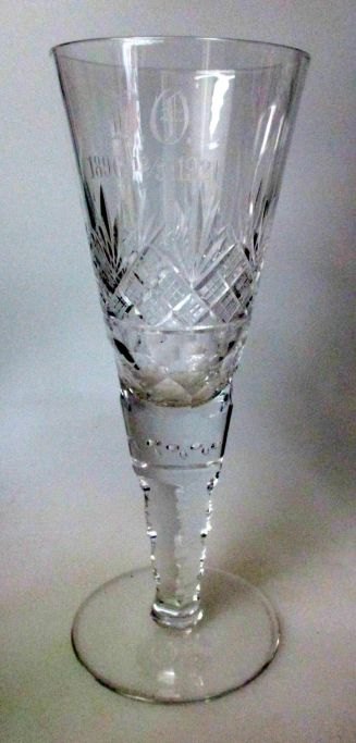 Krystal pokal, 1921. Danmark. Med talrige slibninger. Med inskription. Højde.: 25 cm.
