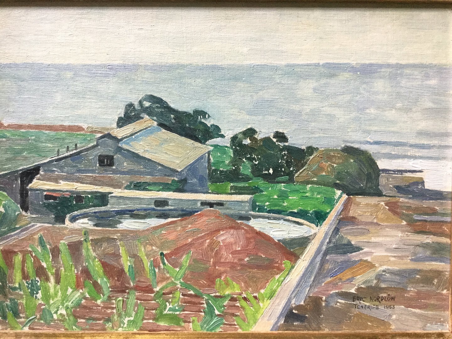 Text available in Danish: Maleri af Eric Nordlöw - Bananplantage, Tenerife 1953.