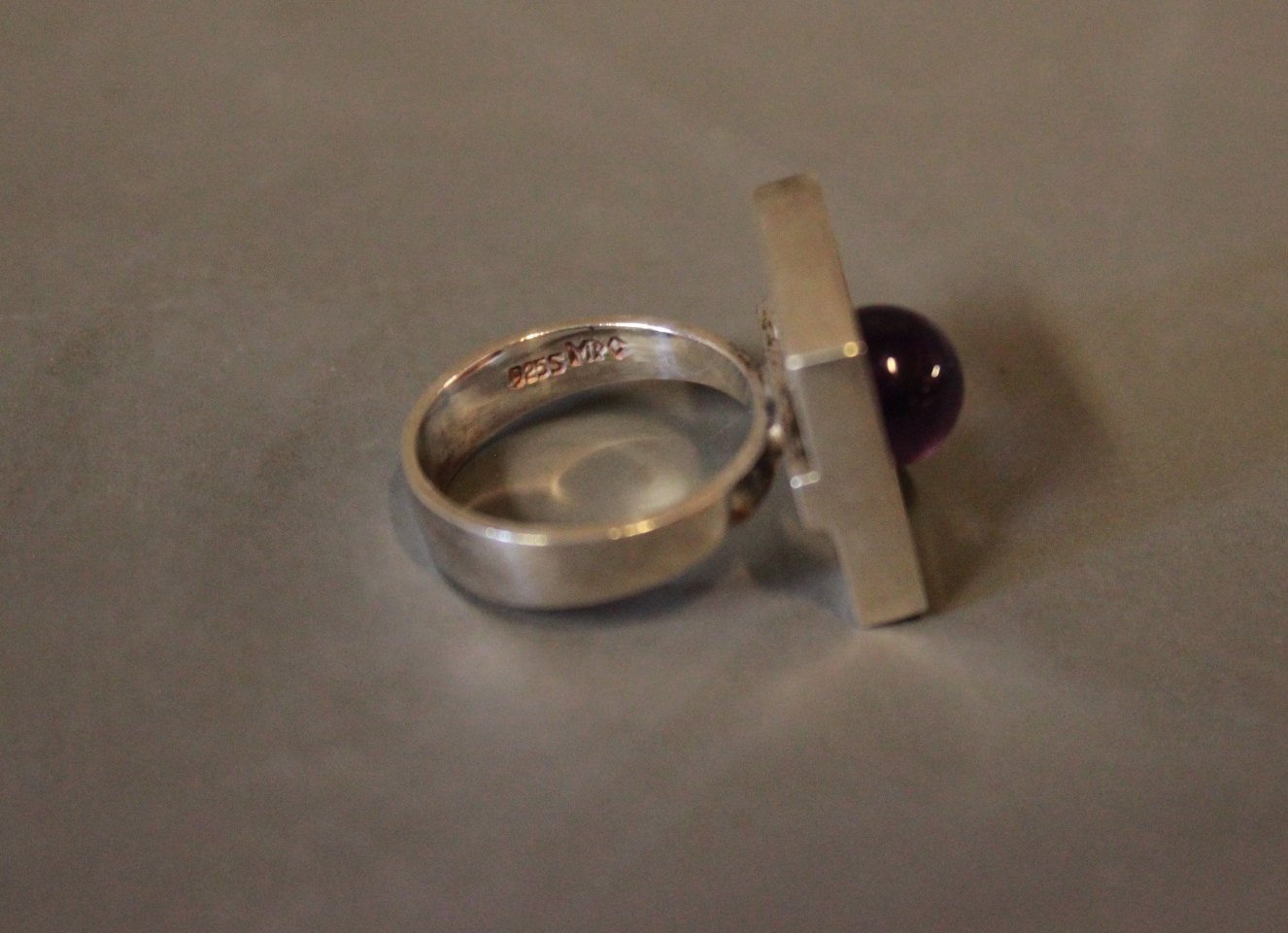 Edged ring in 925 sterling silver with purple rock, stamped MPC by M.P.Christoffersen.