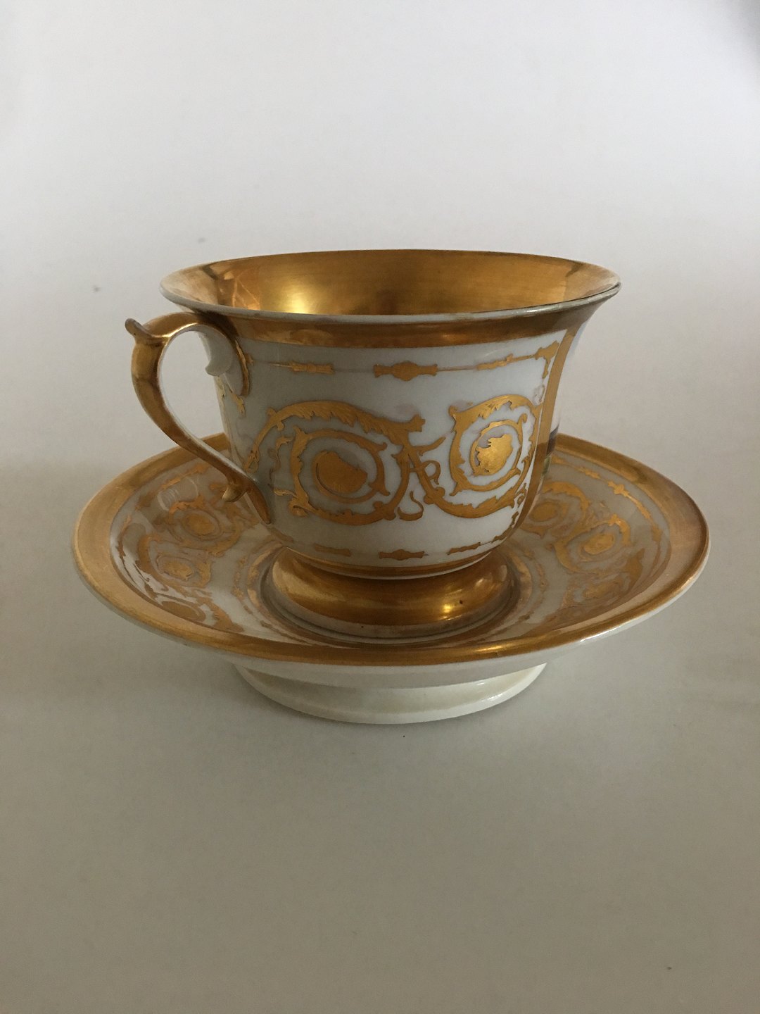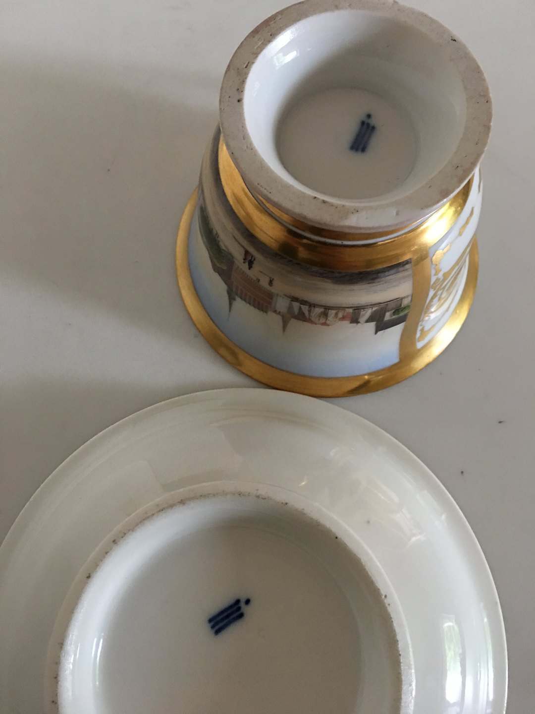 Royal Copenhagen Antik Morgen Kop og Underkop med Håndmalet Motiv af Børsen og Holmens Kirke fra 1820-1850.
