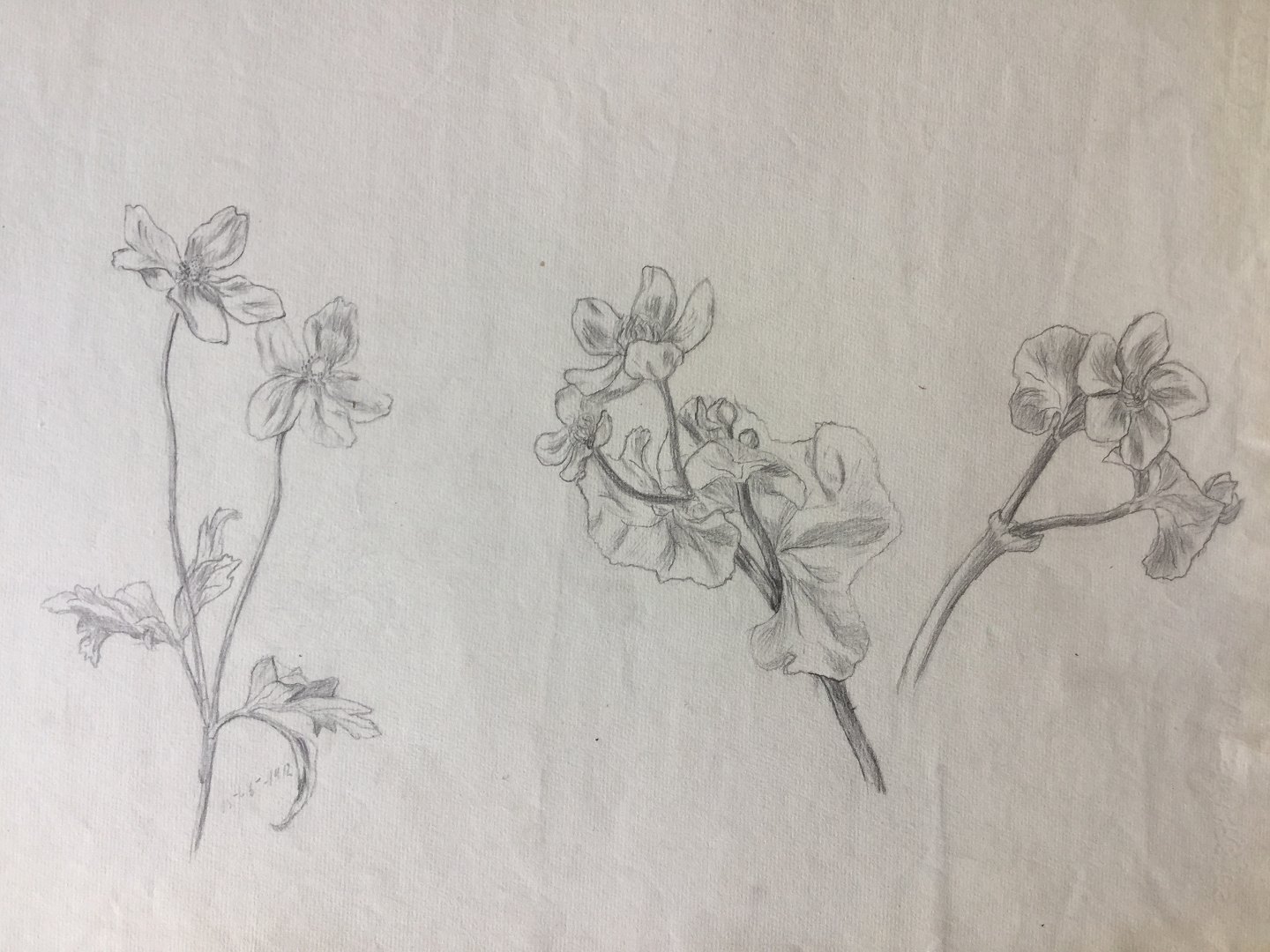 Text available in Danish: Tegning af Ella Pedersen - Skitse af blomster 1912.