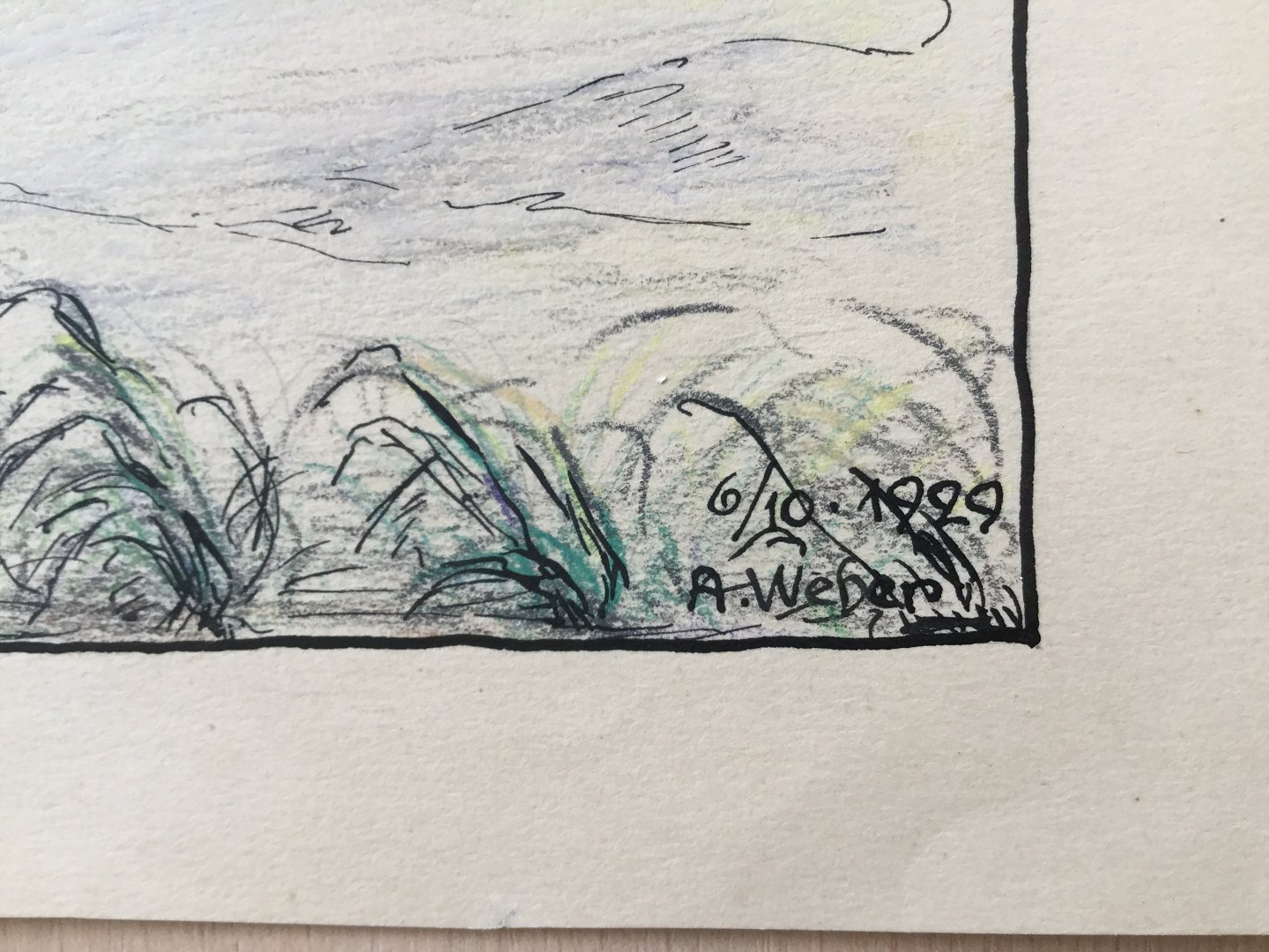 Text available in Danish: Tegning af A. Weber 1929 - Fiskerhus ved kysten.