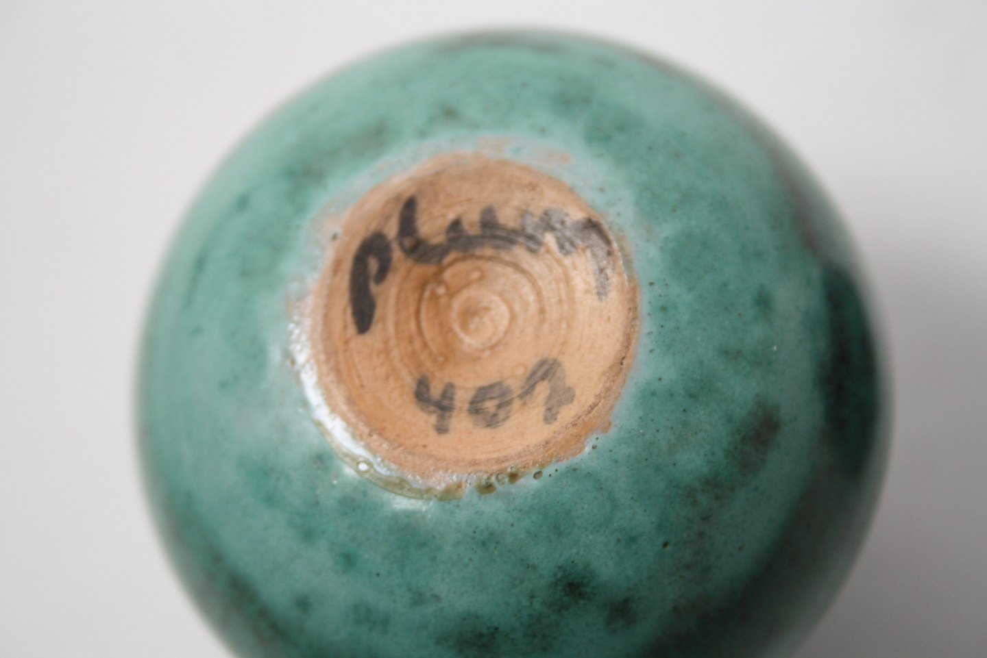 Grøn. Formnr. 407. Højde 6,5 cm. Diameter 6 cm. Pris: SOLGT