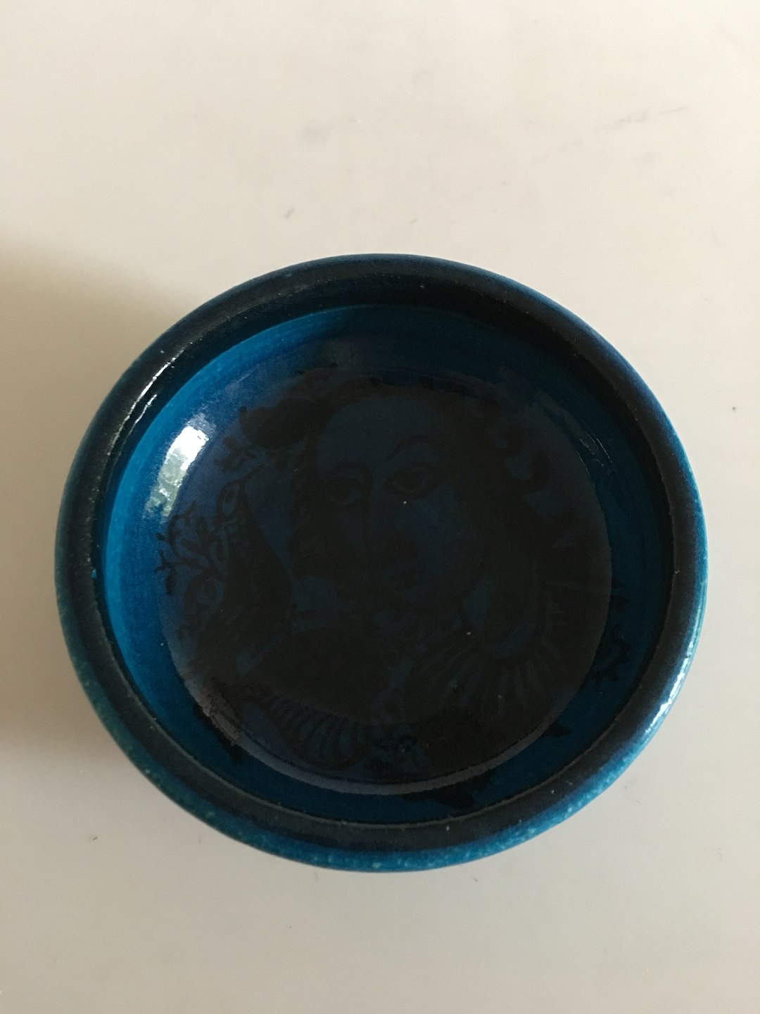 Royal Copenhagen Unique Stoneware Bowl by Nils Thorsson. Blue Glaze with Lady Portrait