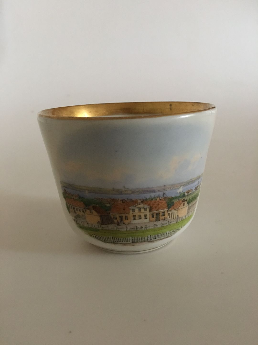 Royal Copenhagen Antique Cup with Handpainted Decoration. In good condition, without any chips and only minor wear on the golddecoration. Measures 7 cm H. 8.7 cm diameter.