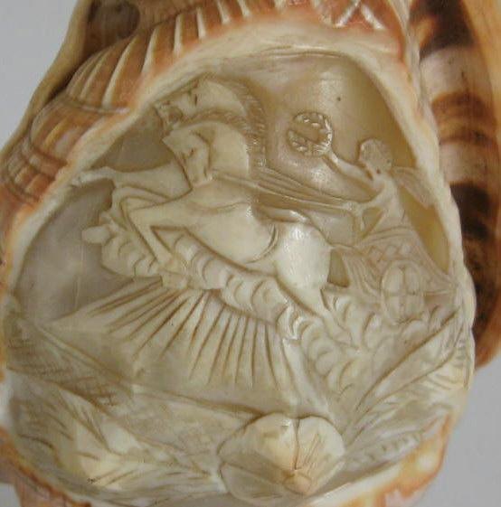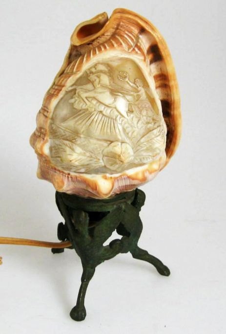 Camé lamp, Italy, o. 1900, on green painted cast iron feet with griffer; concretes in the form of classical scenery. H: 21 cm.