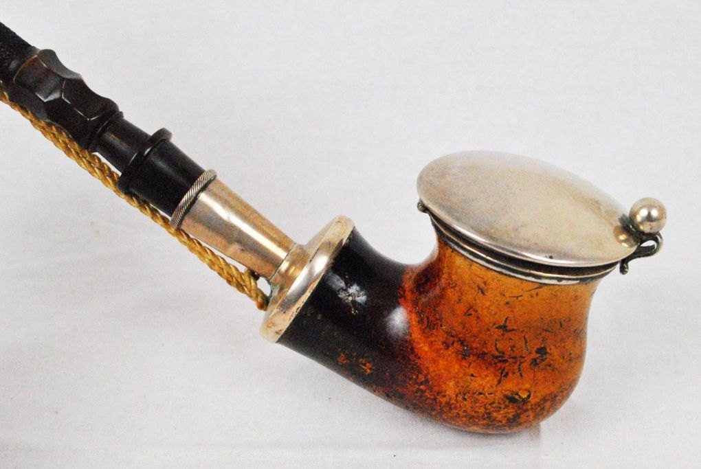 Large meerschaum pipe, 19th century. Denmark. With silver-plated lid. Length: 46 cm.