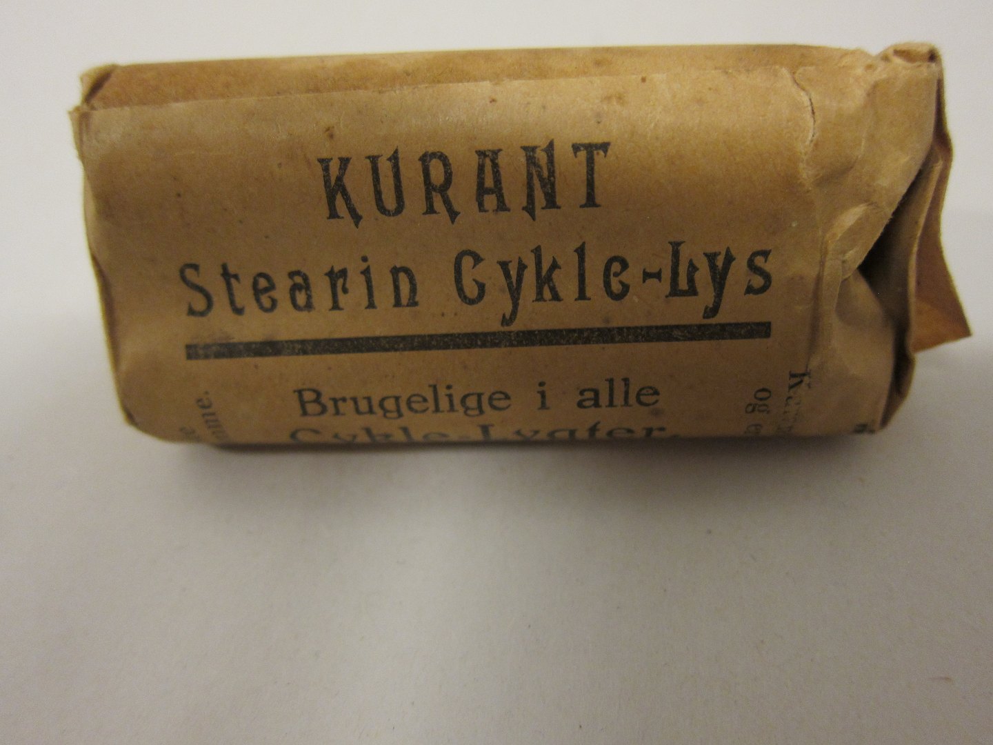Cykellys er af stearin af mærket Curant og sko-beskytter-beslag fra D.R.G.M.
