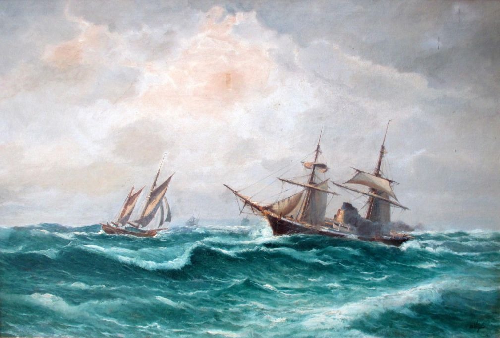 Larsen, C. Vilhelm (1870 - 1959) Denmark: Marine with numerous ships.