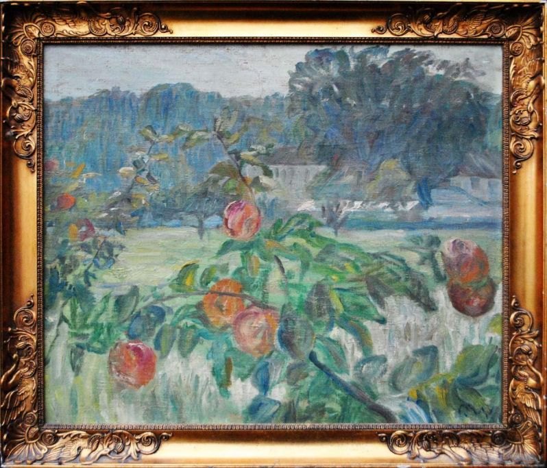 Wolmar, Gustaf (1880-1971) Sverige/Danmark: Et æbletræ. Olie på lærred. Signeret.: Monogram. 43 x 52 cm. På bagsiden anført, at arbejdet er fra 1910.