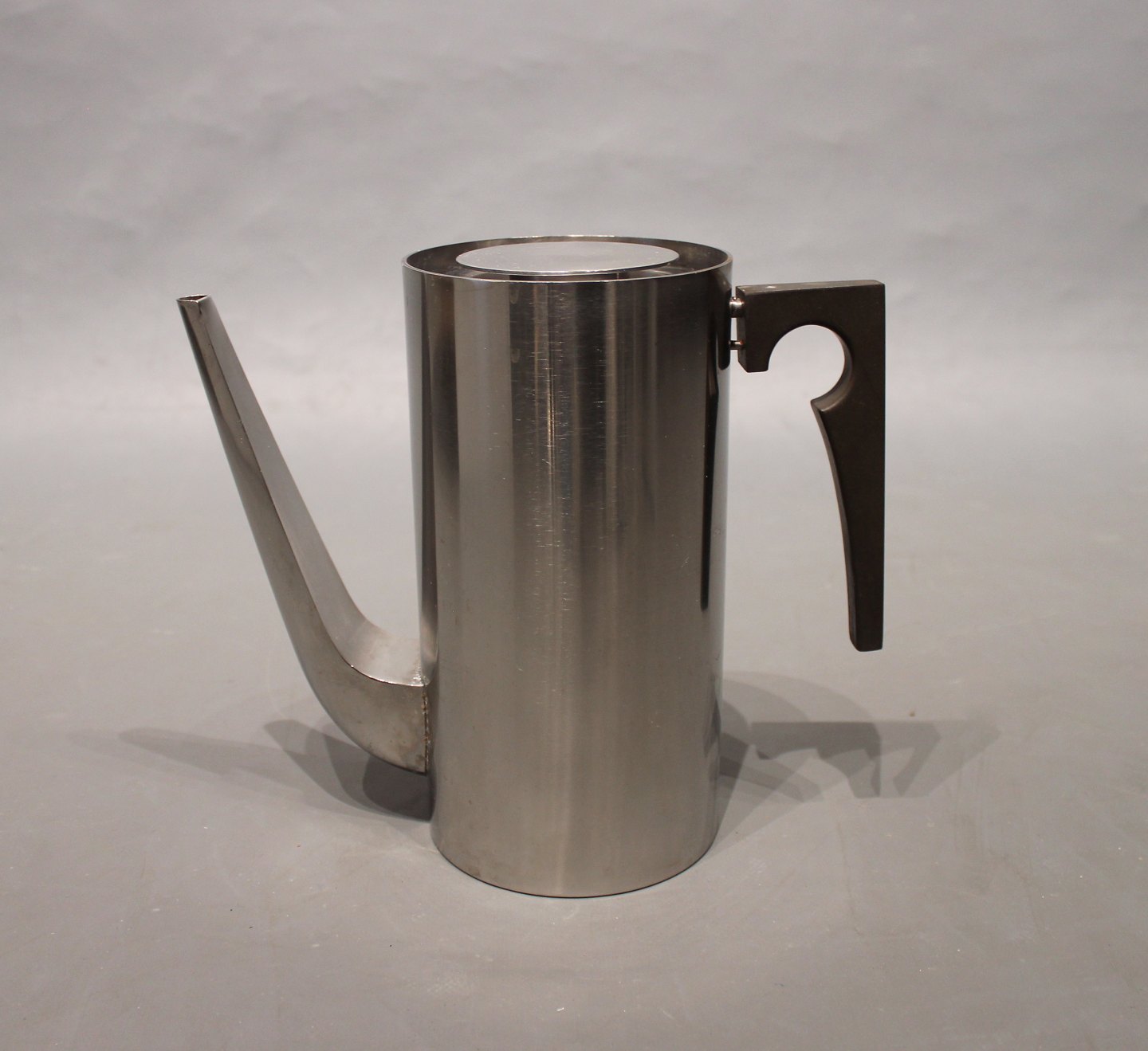 Coffepot, teapot, milk jug and cream jug from the series Cylinda Line designed by Arne Jacobsen for Stelton.
