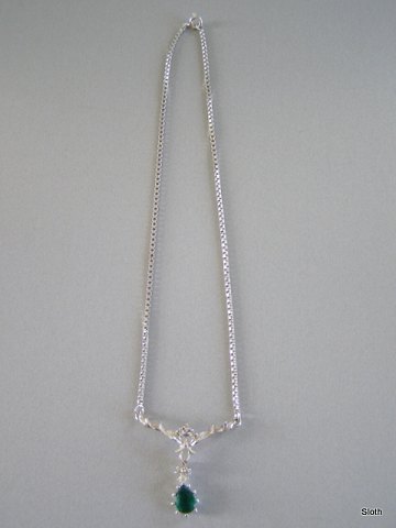 Halssmykke 925 S med grøn sten og Syntetiske Brillanter Kædens L: 36 cm.