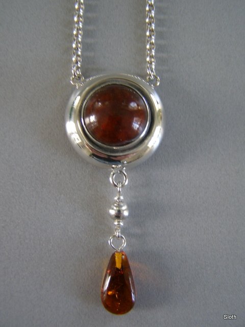 Halssmykke Sølv, Vedhæng med indfattet Rav og Ravperle
