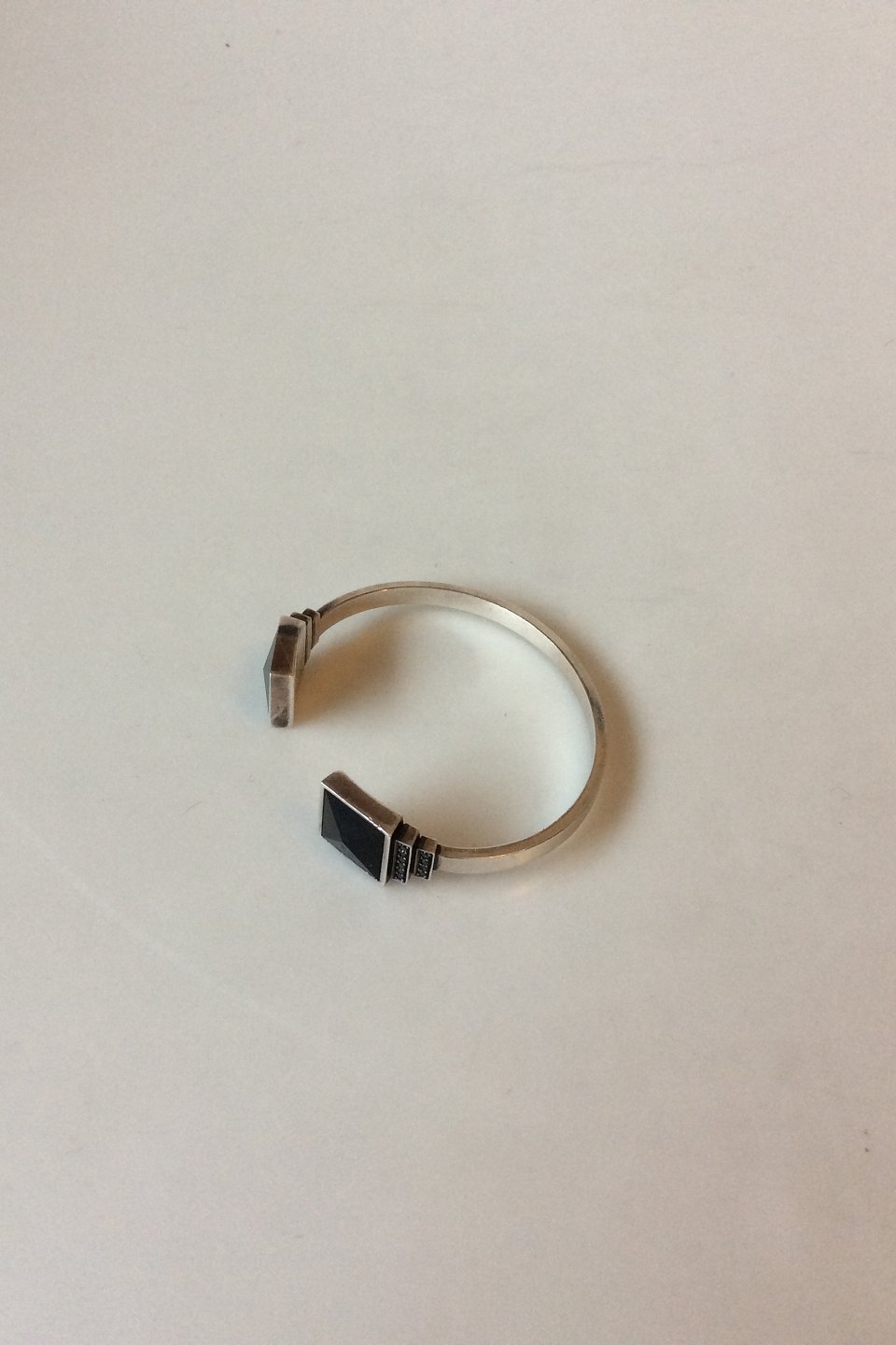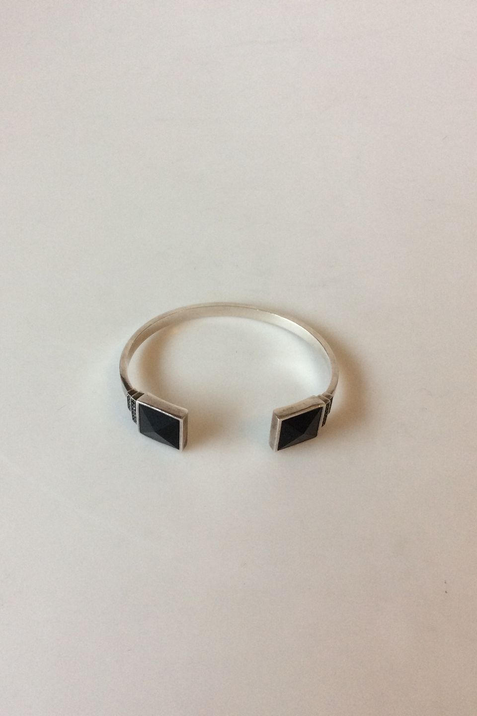 Georg Jensen "Nocturne" bracelet in Sterling Silver with two Black Agates and Black Diamonds total 0.22 ct. Designed in 2013. No 570B. Measures 6 x 4.5 cm / 2 23/64" x 1 49/64". Weighs 22.3 g / 0.787 oz.