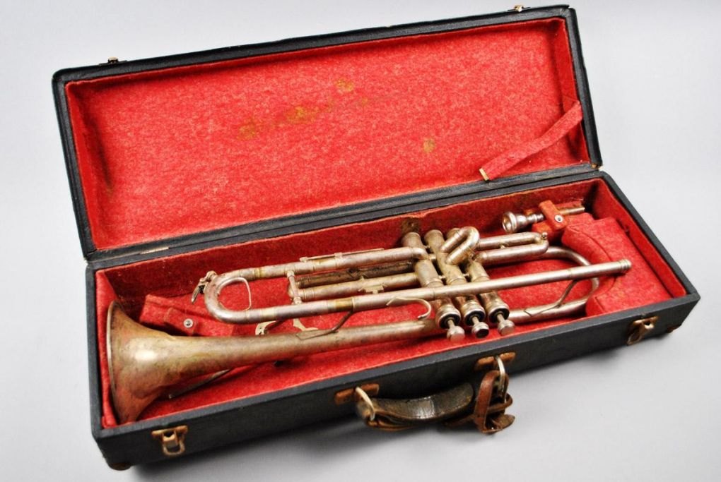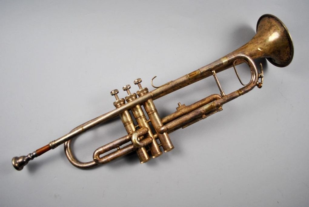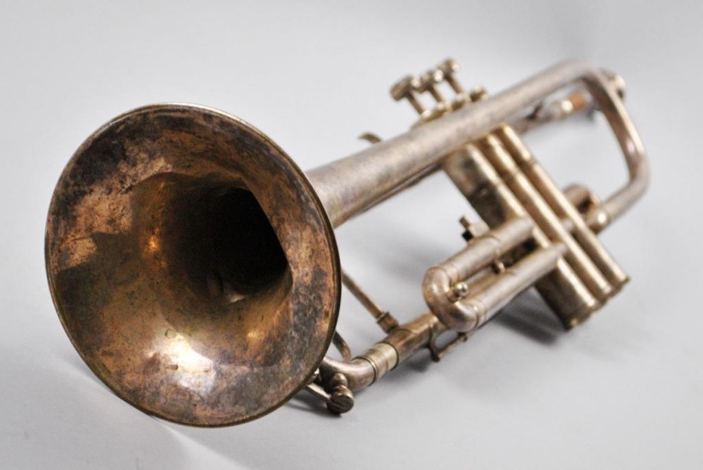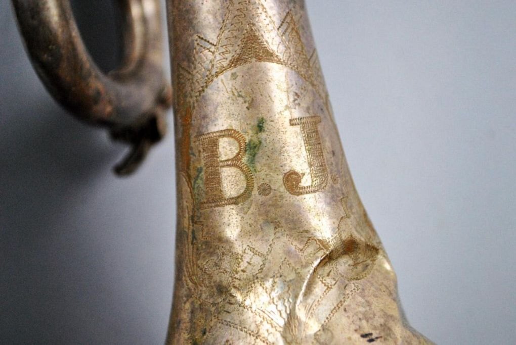 B. J. Trumpet, 20. årh. Forsølvet messing. Længde.: 50 cm.  I tilhørende kasse.
