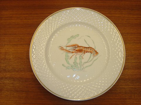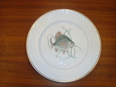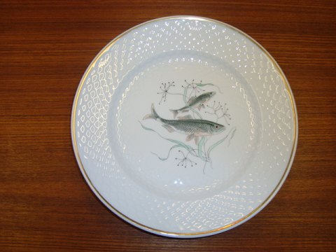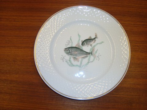 B & G Fisketallerken i Hotelporcelæn m. forsk. fiskemotiver D. 24,5 cm, 6 stk. på lager