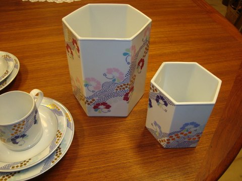 B & G Prisme designet af Anne Grethe Halling-Koch, 8 par kopper 3 dele kr. 125 pr sæt, stor vase kr. 250, lille vase kr. 125
