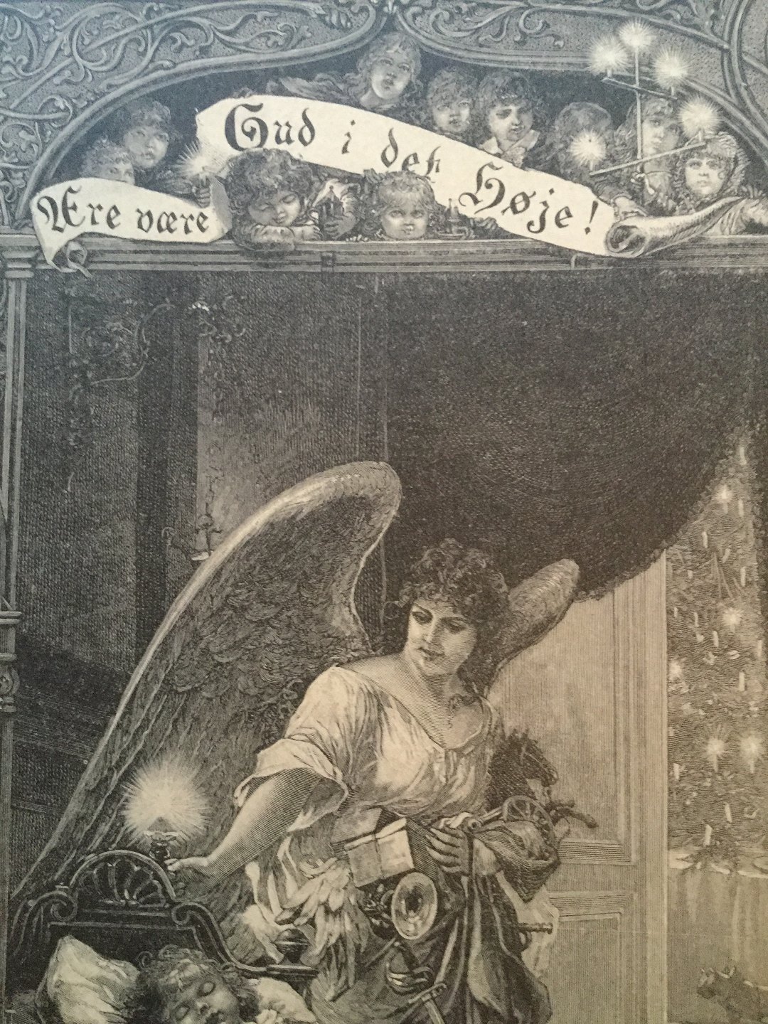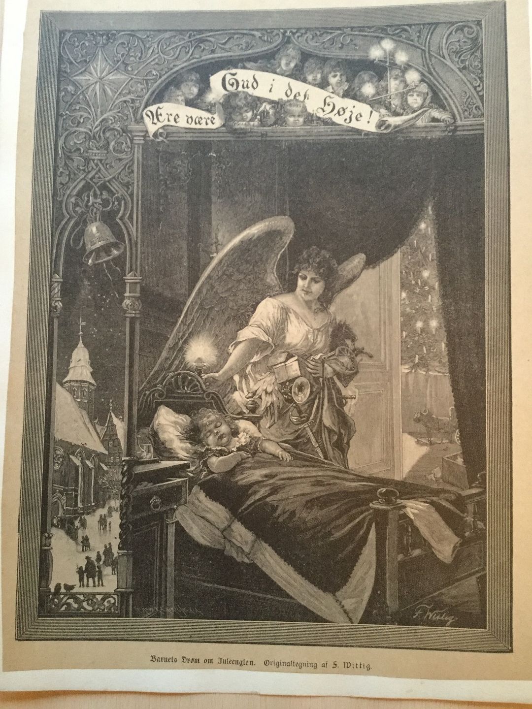 Træsnit af F. Wittig - Barnets drøm om juelenglen.