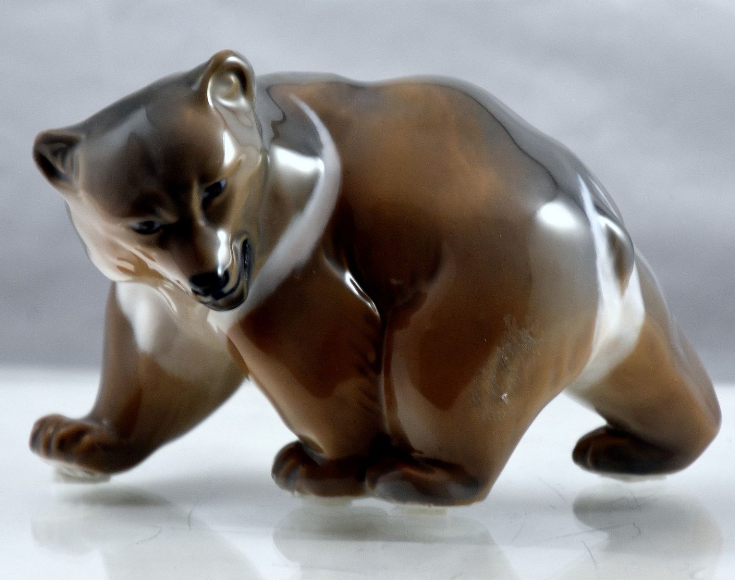 Kongelig figur Gående bjørn af Knud Kyhn (2841) for Royal Copenhagen, den kgl brune bjørn kigger til siden.