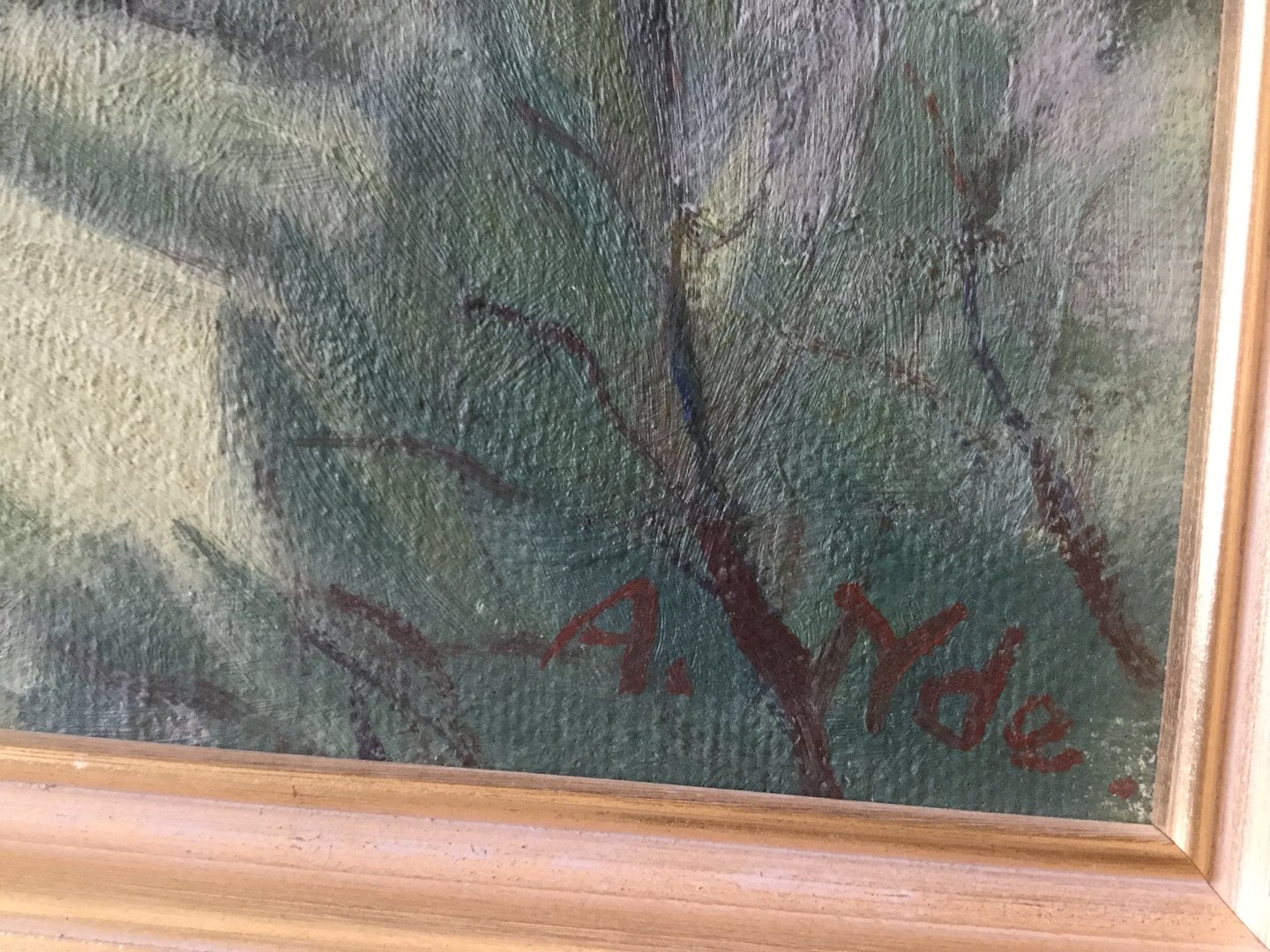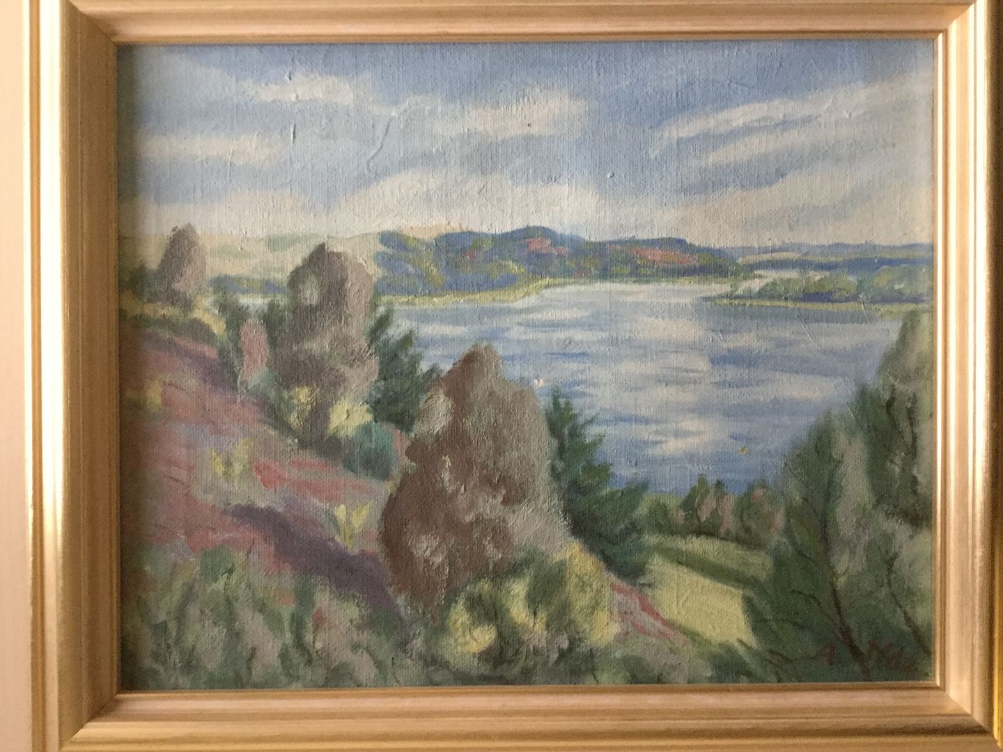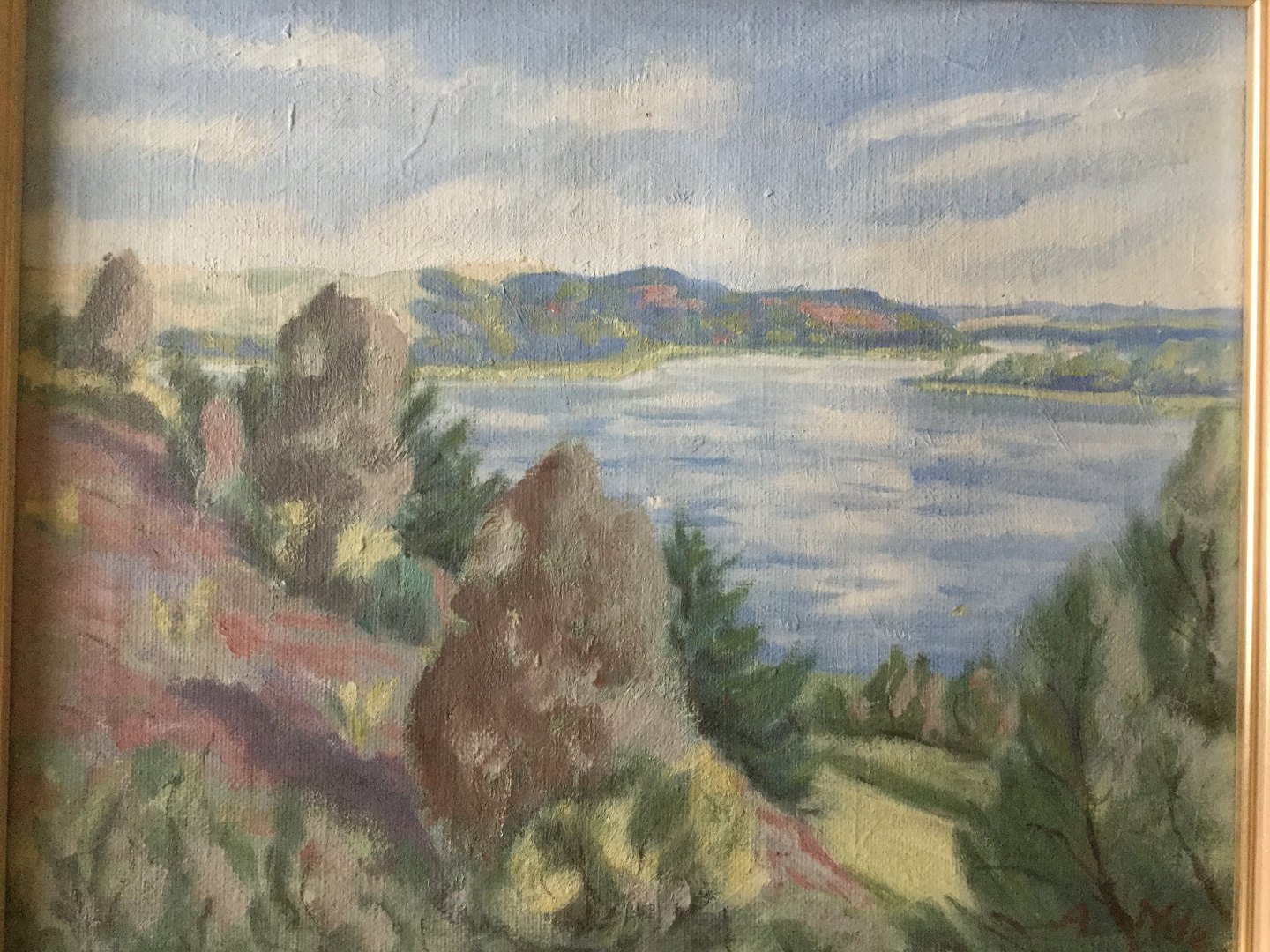 Maleri - Landskab med sø af A. Yde.