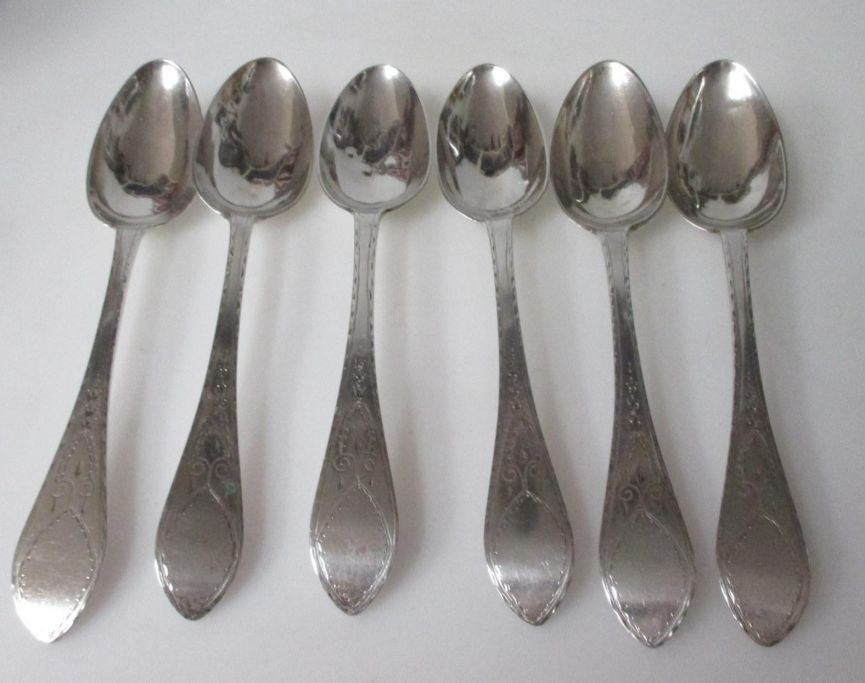 6 Danish Empire Silver Spoons, Silversmith Christian N. Hosøe (1739 - 1812), Copenhagen, Denmark.
