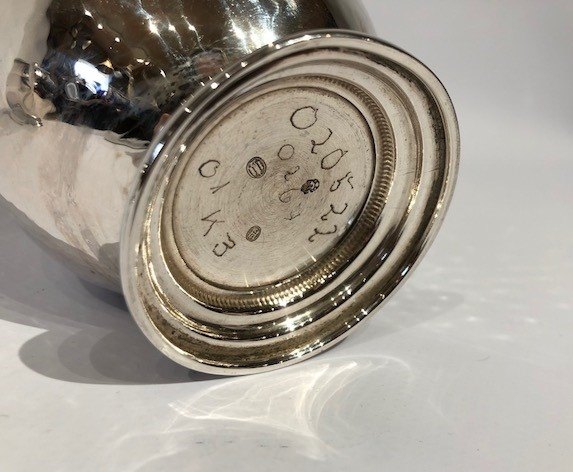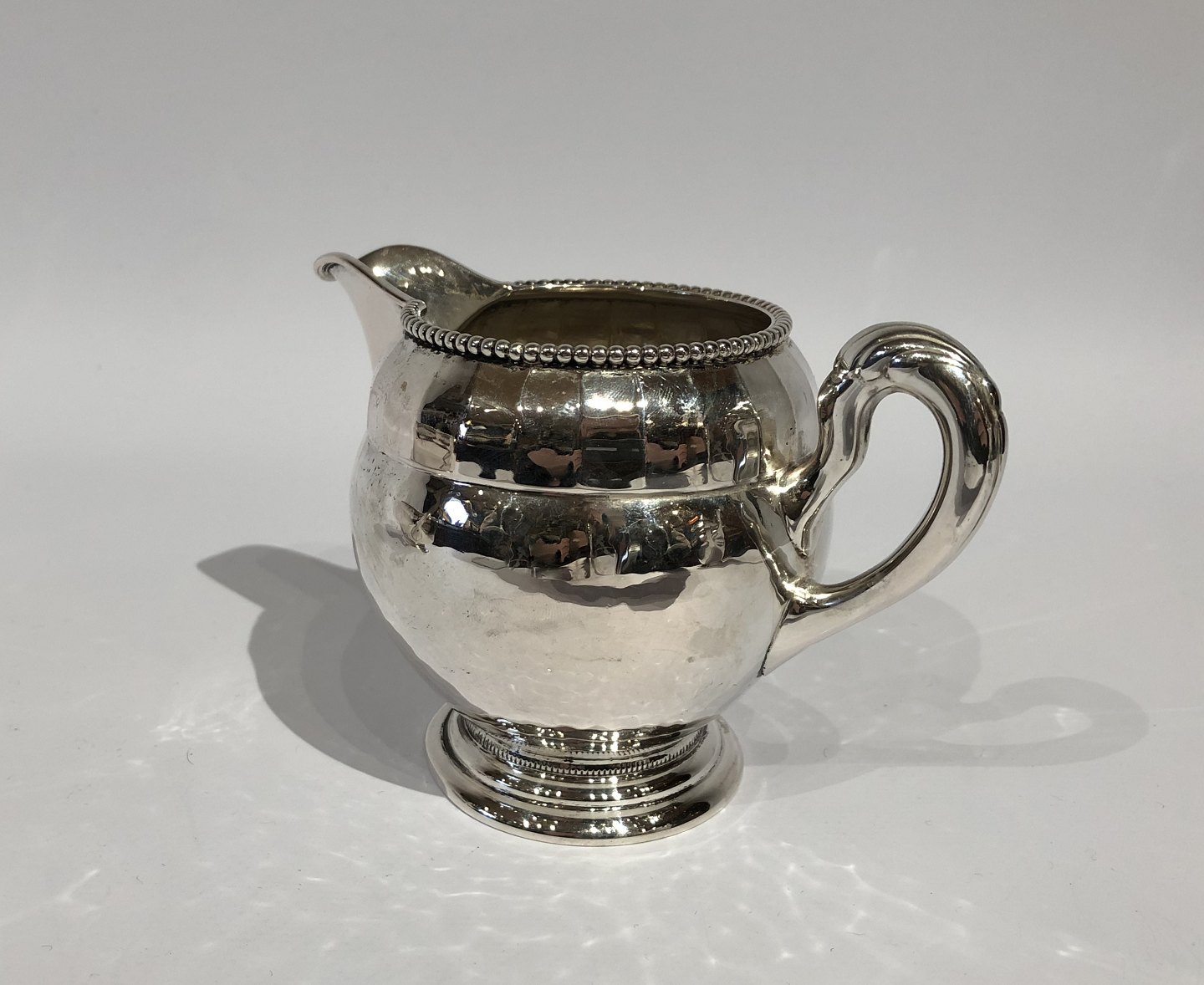 Kaffeservice bestående af kaffekande, sukkerskål og flødekande med fin perlekant og i tretårnet sølv.