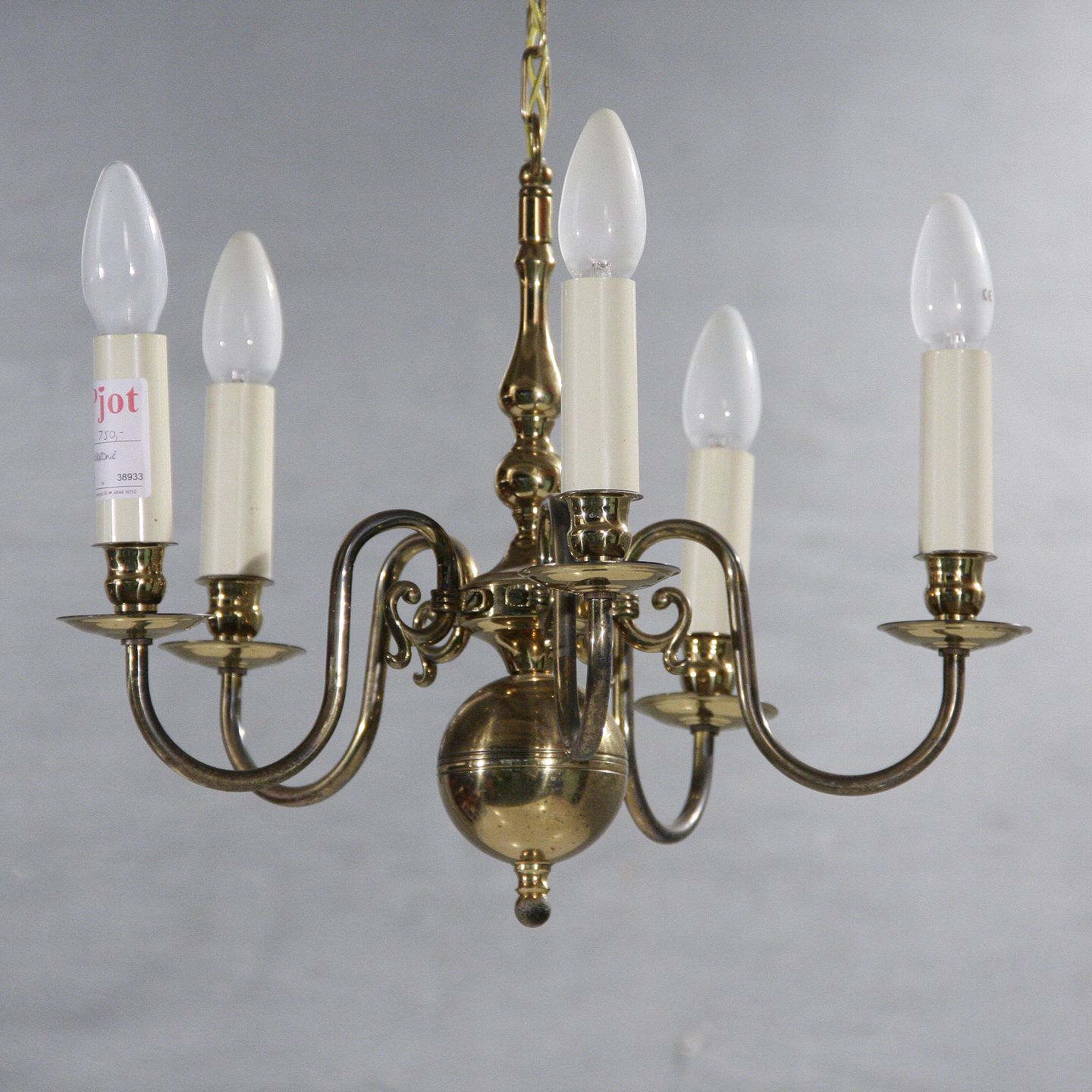 5-armet kirkekrone i messing, 40 cm i diameter, 1960-1970